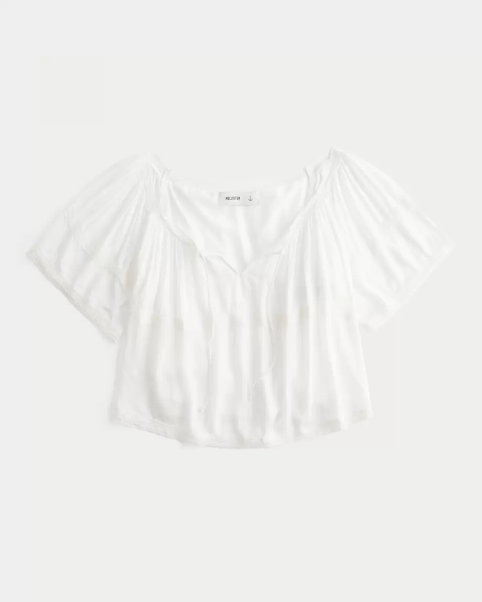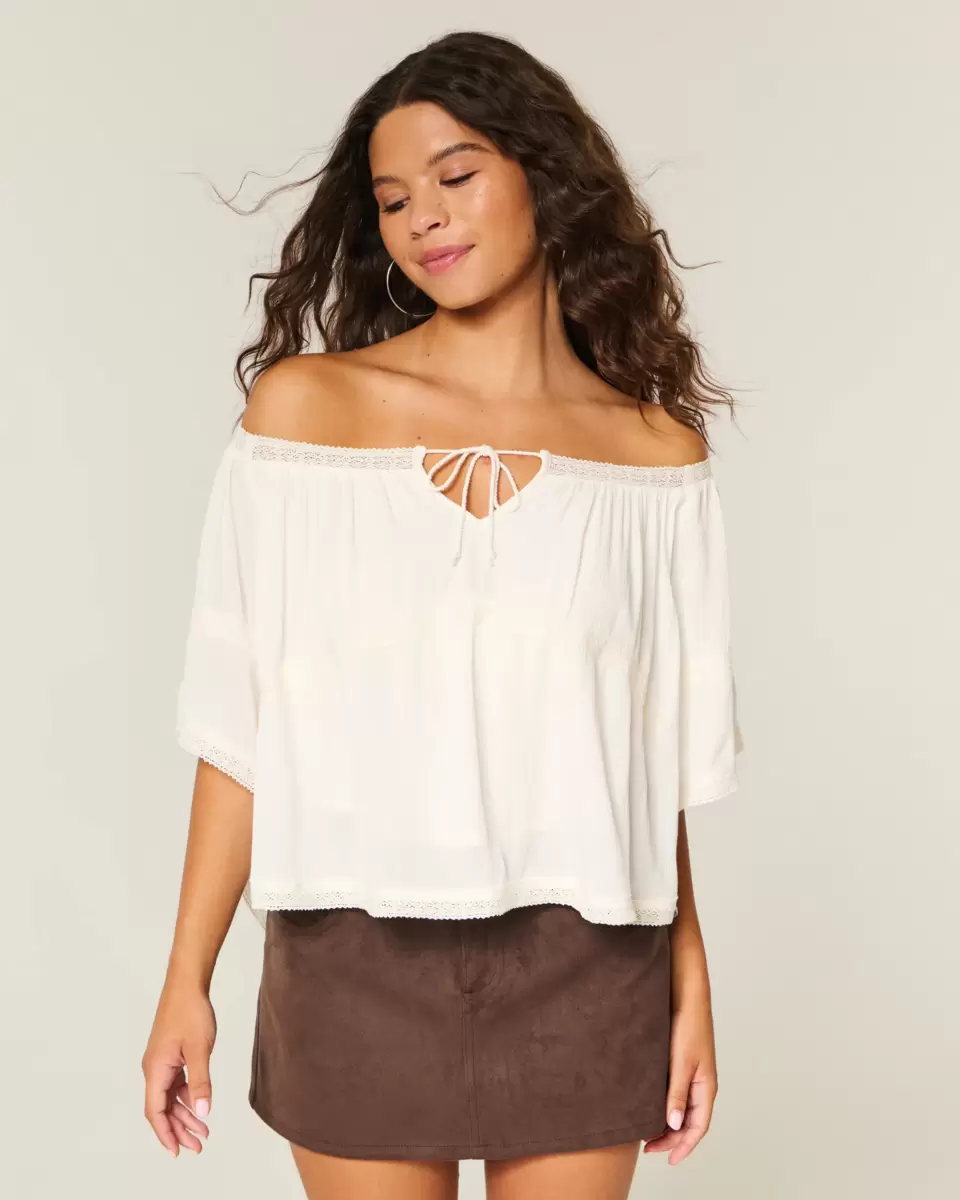 Fluide et ultra doux, ce haut poncho d’inspiration bohème est confectionné en tissu froissé et arbore de jolis détails en dentelle ainsi qu’un lien à nouer à l’encolure. Ses manches courtes le rendent parfait pour une tenue habillée ou décontractée ! Coupe facile. Importé.