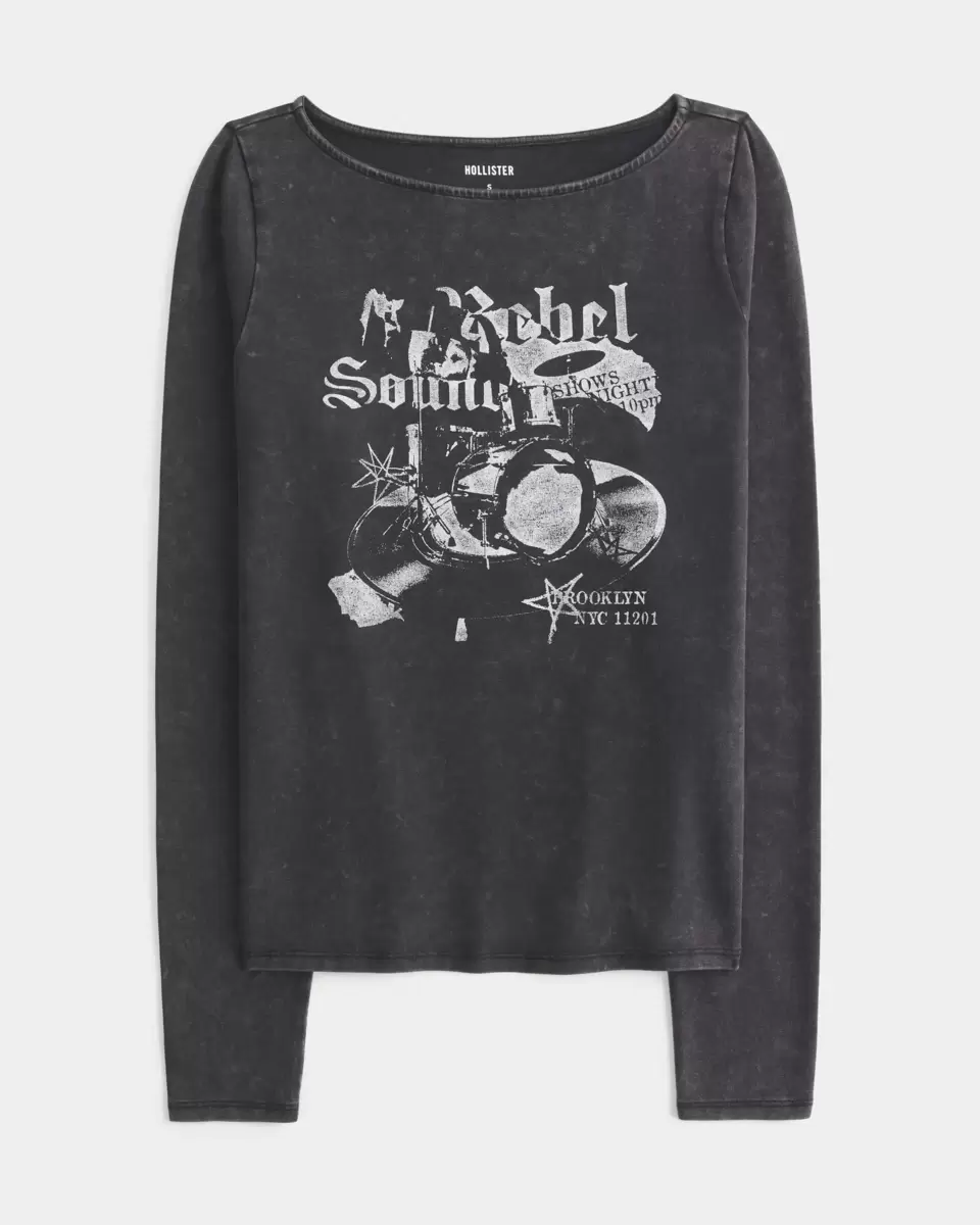 Mignon et ultra doux, ce haut à manches longues arbore un imprimé musical de Brooklyn. Coupe ajustée. Importé.