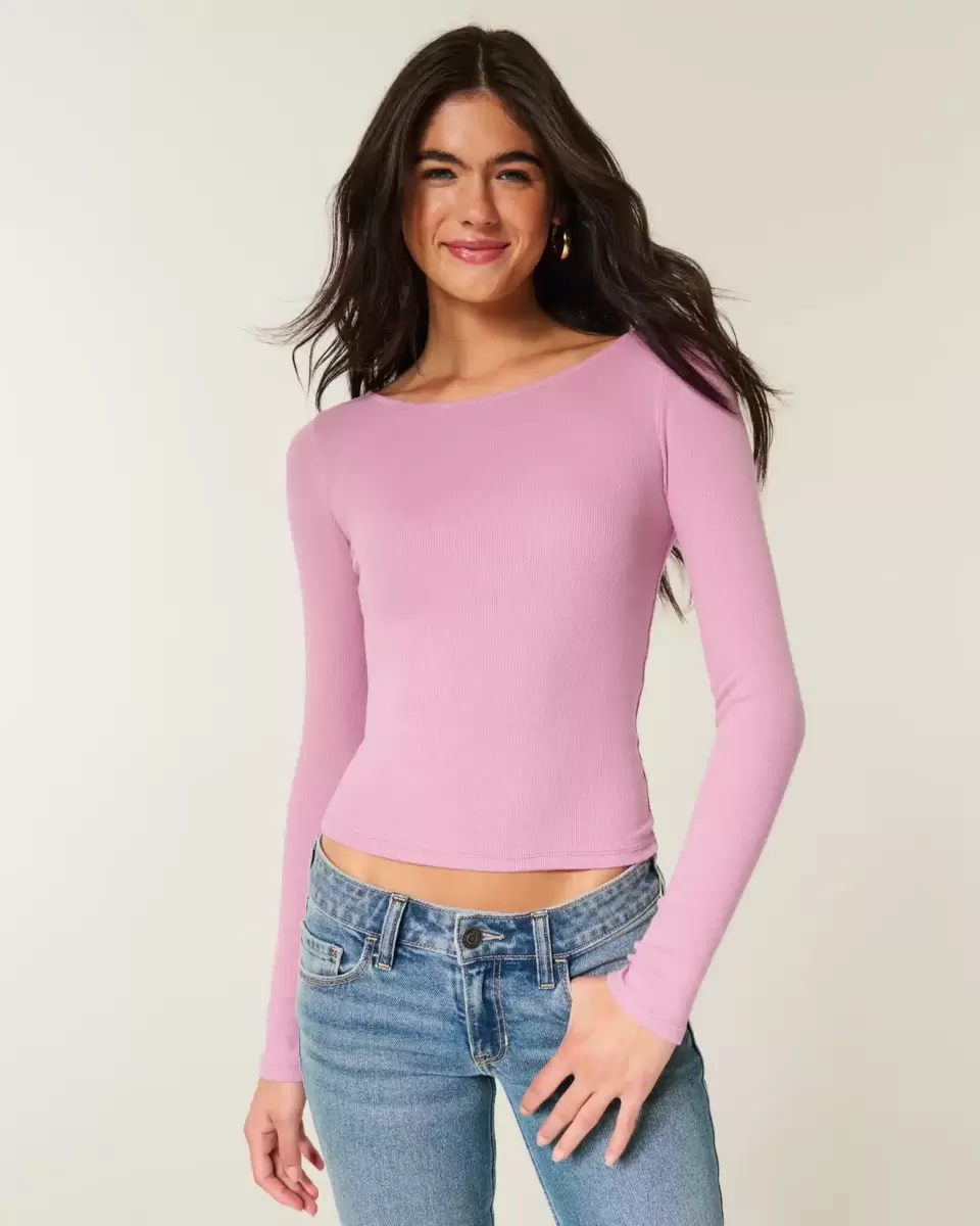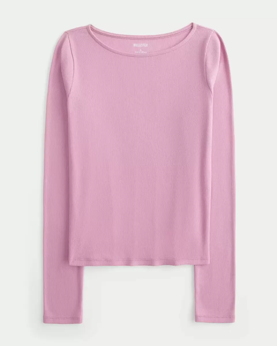 Haut à manches longues confortable et ultra doux en mélange de coton, avec une encolure dégagée. Coupe ajustée. Importé.