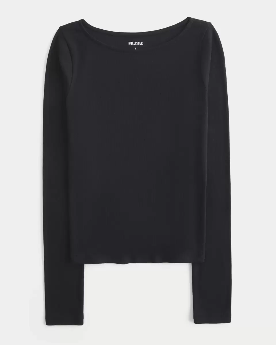 Haut à manches longues confortable et ultra doux en mélange de coton, avec une encolure dégagée. Coupe ajustée. Importé.