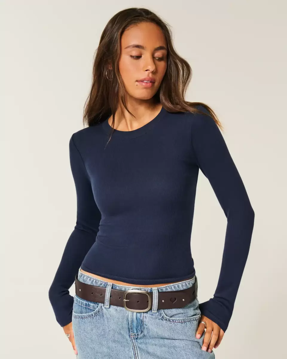 Haut à manches longues ultra doux avec col ras du cou. Importé.