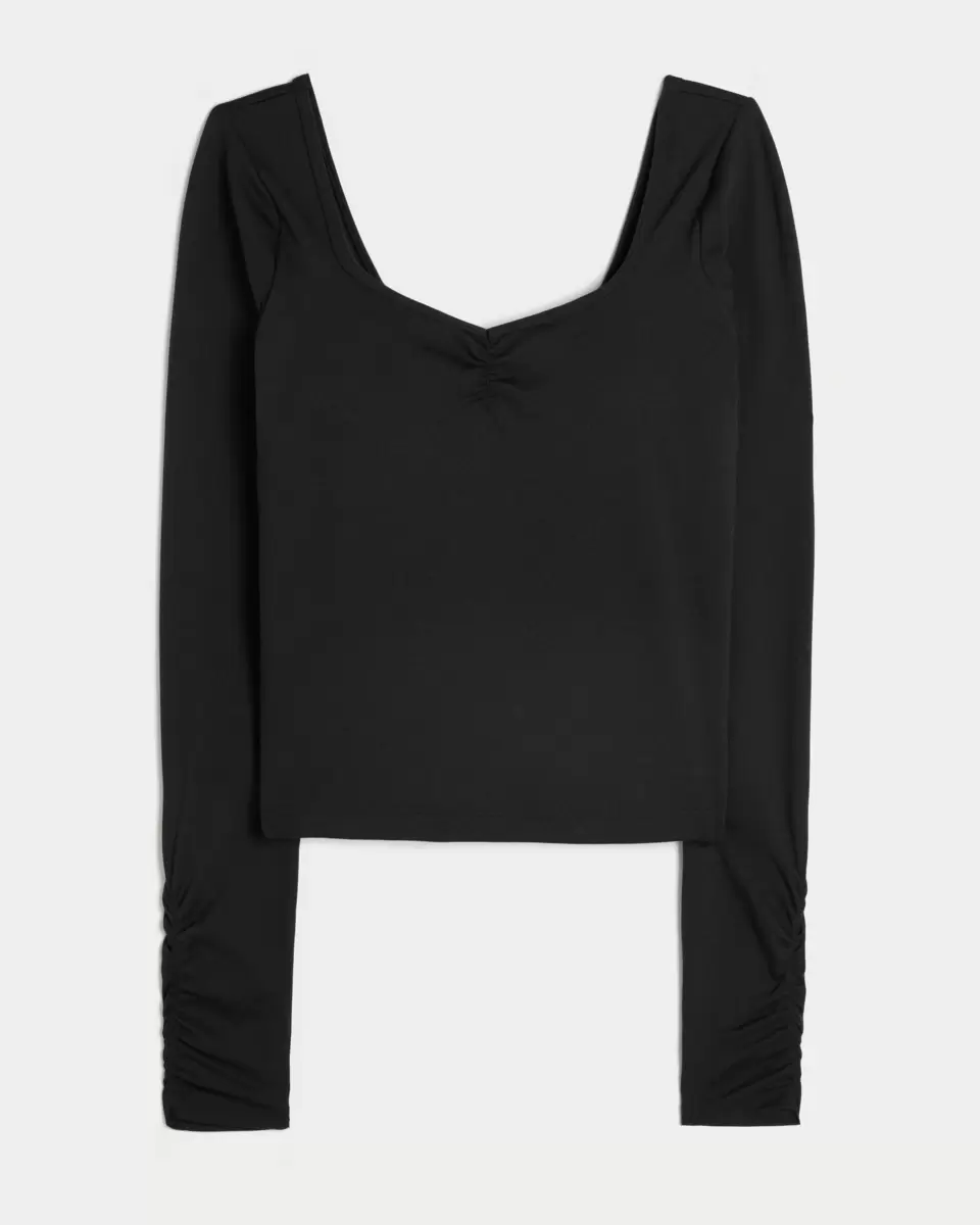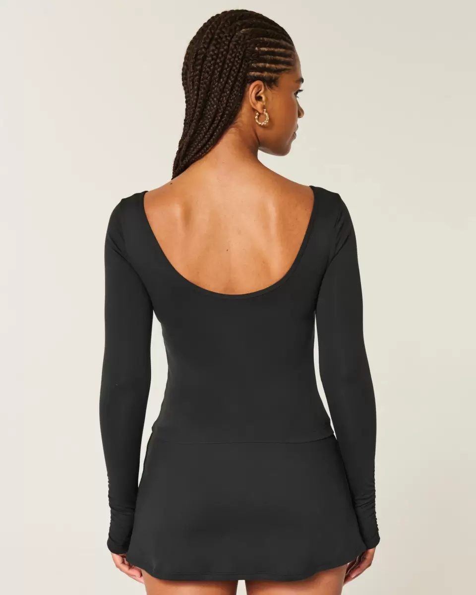 Un haut de sport à manches longues ultra-confortable, confectionné dans notre tissu Recharge respirant, extensible dans les 4 sens et évacuant l’humidité, au toucher brossé ultra-doux. Encolure cœur nouée avec détails cintrés, coussinets amovibles. Importé.