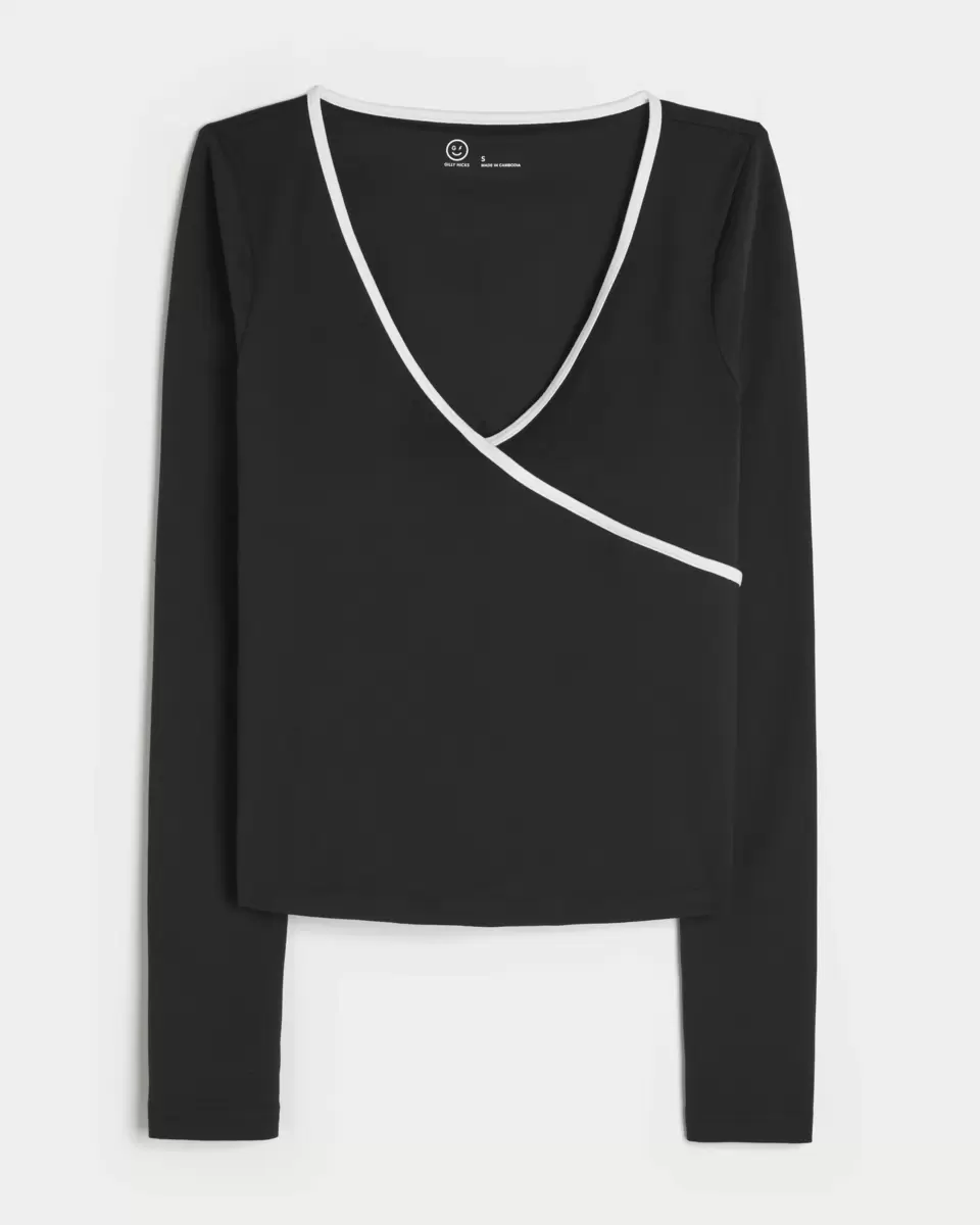 Mignon et ultra doux, ce haut actif présente des bordures à pointes et un détail cache-cœur sur le devant. Décolleté en V, soutien-gorge intégré avec coussinets amovibles. Importé.