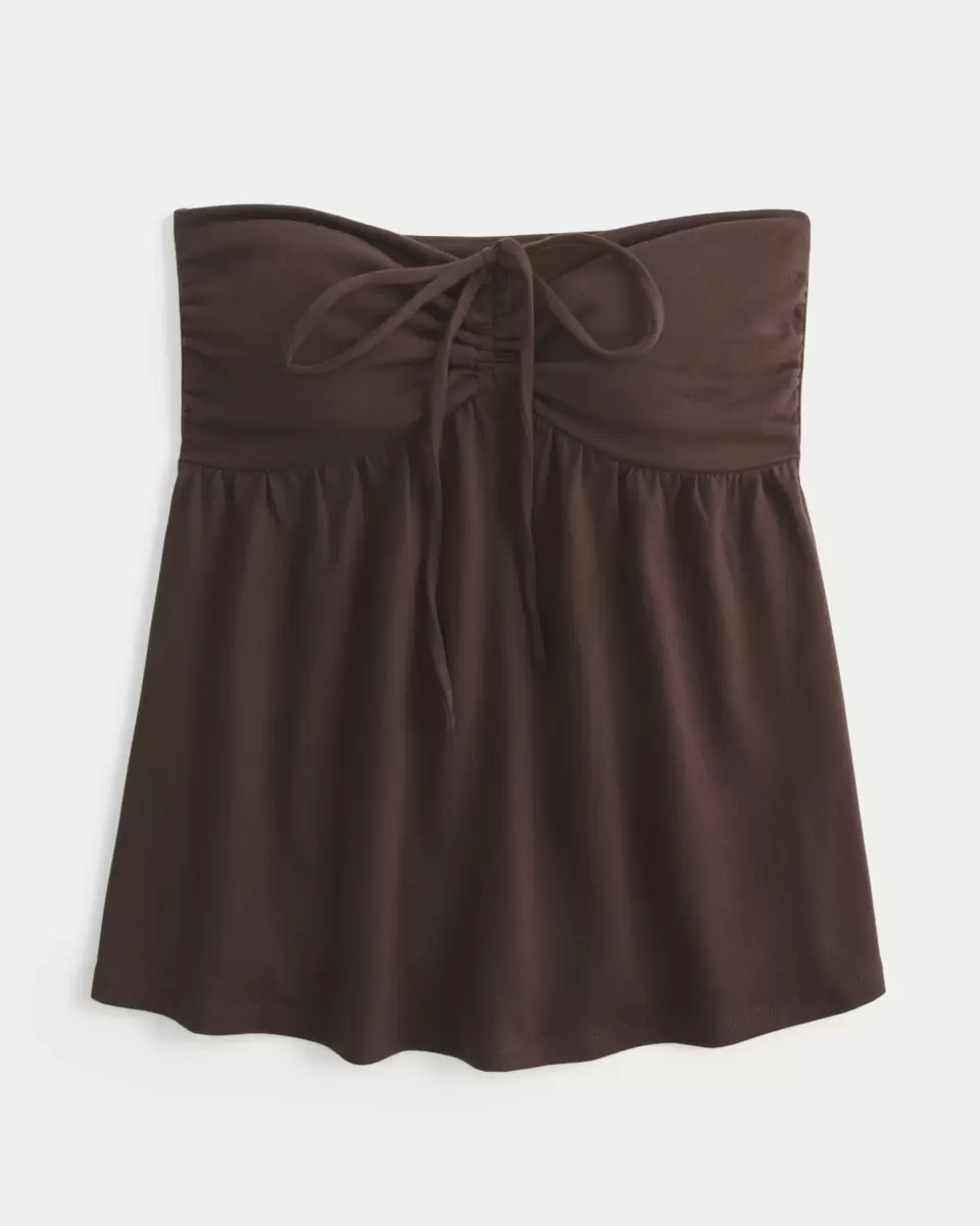 Fluide et ultra doux, ce haut babydoll présente une poitrine cintrée avec un lien à nouer et un décolleté sans bretelles, avec possibilité de le nouer en dos nu. Doublure double au niveau de la poitrine. Coupe facile. Importé.
