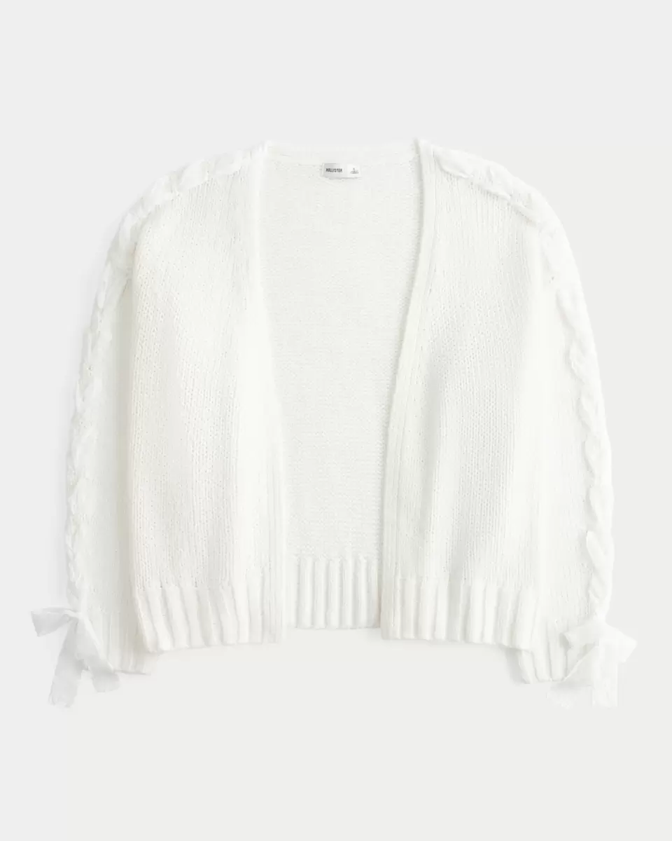 Confortable et ultra doux, ce cardigan présente des détails en dentelle le long des manches. Sans fermeture, manches longues, bords côtelés. Coupe facile. Importé.