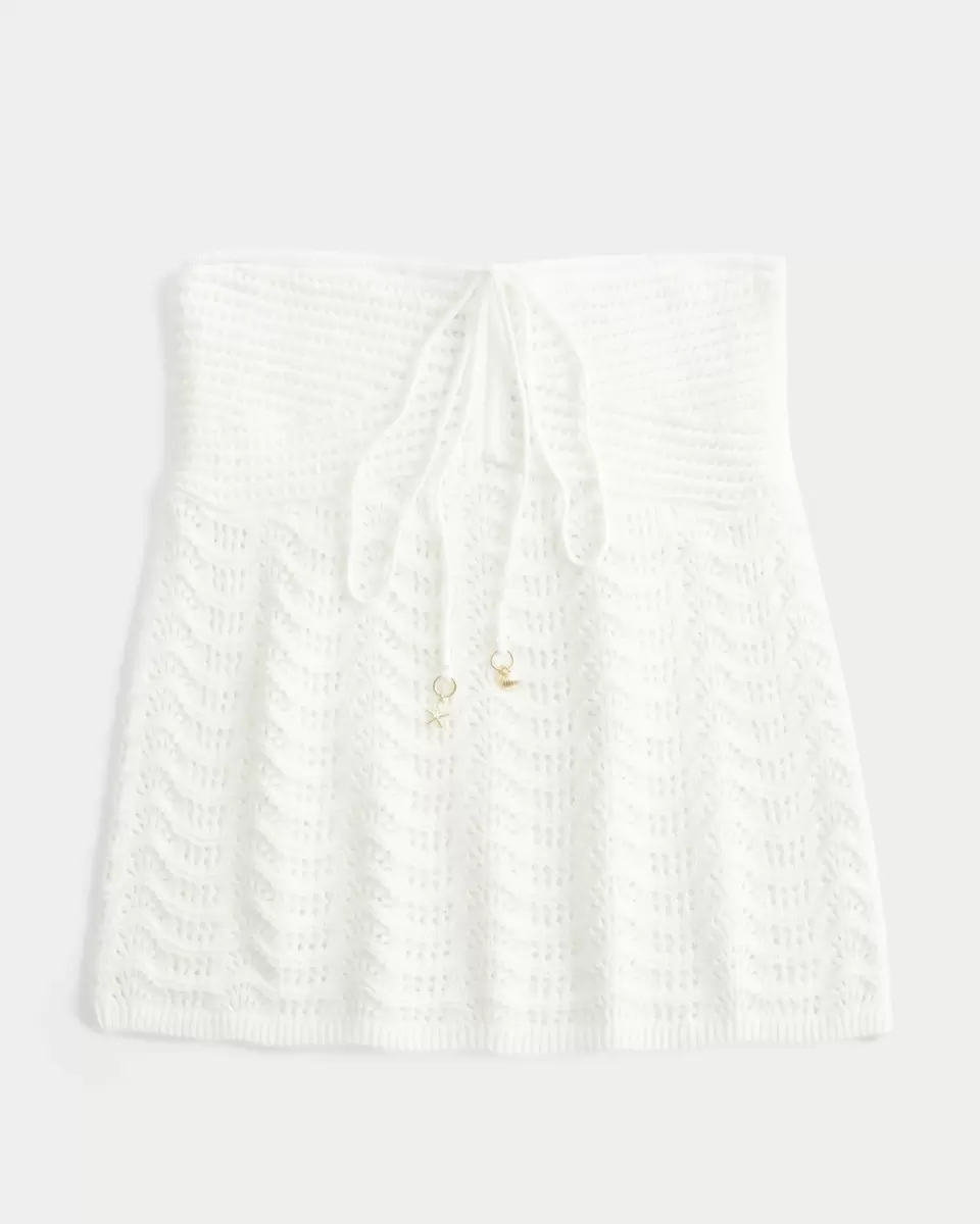 Mignon et ultra doux, ce haut sans bretelles est confectionné dans un tissu confortable façon crochet et présente un lien à nouer sur le devant avec des détails charmants. Peut se porter dos nu ! Coupe facile. Importé.