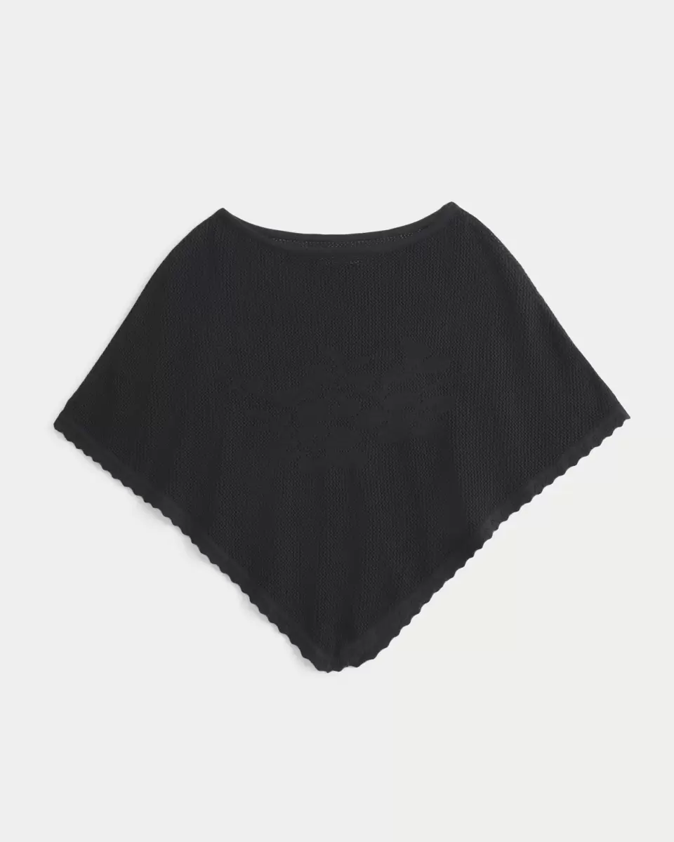 Poncho fluide et ultra doux à la texture piquée, orné d’un motif floral intarsia. Encolure dégagée. Coupe facile. Importé.