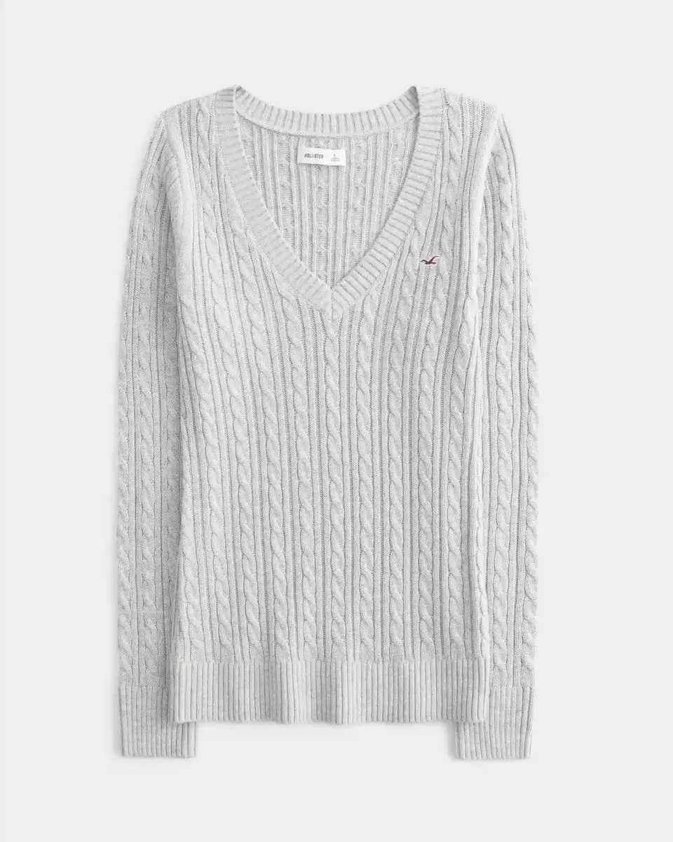 Un pull ultra doux et confortable avec des motifs torsadés classiques et un logo brodé sur la poitrine gauche. Encolure en V, bords-côtes, coupe plus longue et manches longues. Coupe ajustée. Importé.
