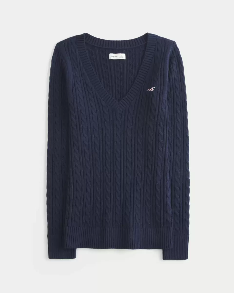 Un pull ultra doux et confortable avec des motifs torsadés classiques et un logo brodé sur la poitrine gauche. Encolure en V, bords-côtes, coupe plus longue et manches longues. Coupe ajustée. Importé.