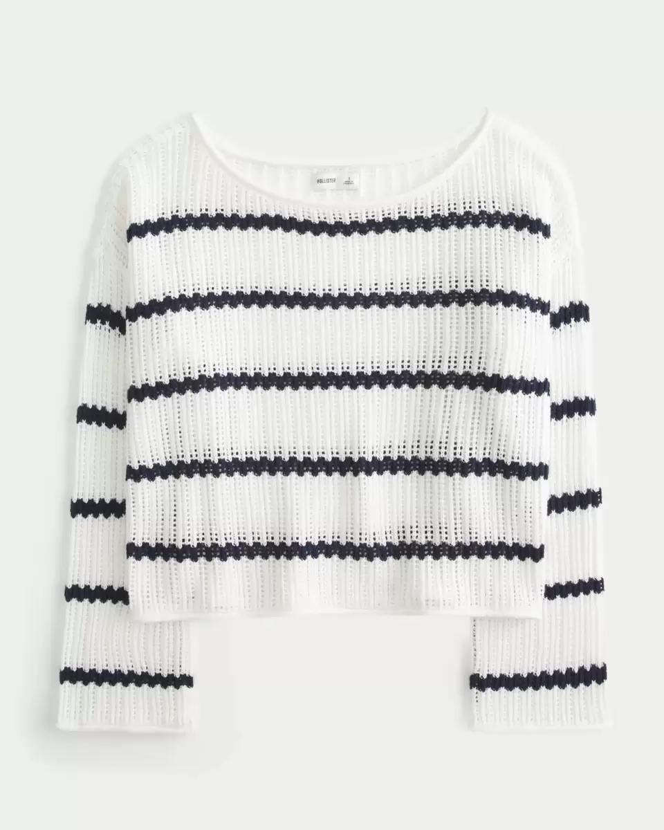 Pull ultra doux en tissu crocheté, avec une texture piquée et un motif rayé. Encolure ras du cou décontractée, manches longues. Coupe facile. Importé.