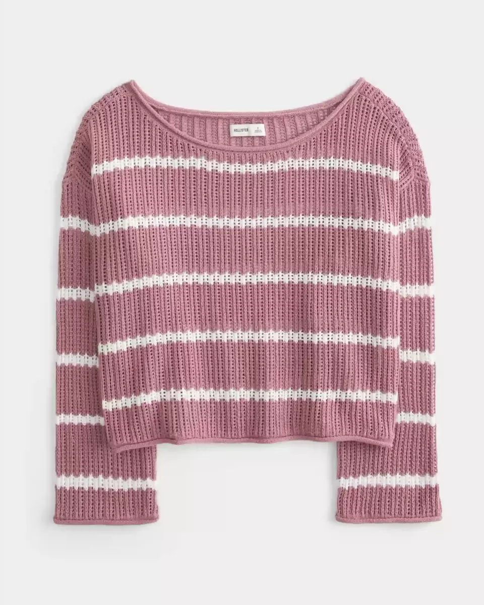 Pull ultra doux en tissu crocheté, avec une texture piquée et un motif rayé. Encolure ras du cou décontractée, manches longues. Coupe facile. Importé.