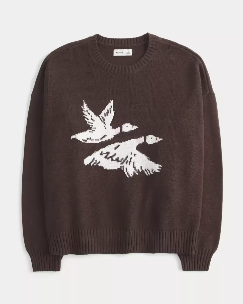 Ce pull douillet et ultra doux est orné d’un motif intarsia d’oiseaux en vol. Encolure ras du cou, manches longues et bords côtelés. Coupe facile. Importé.