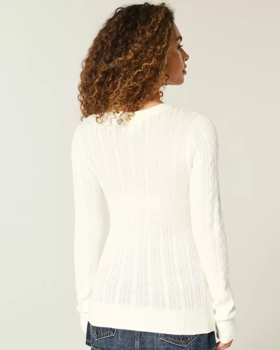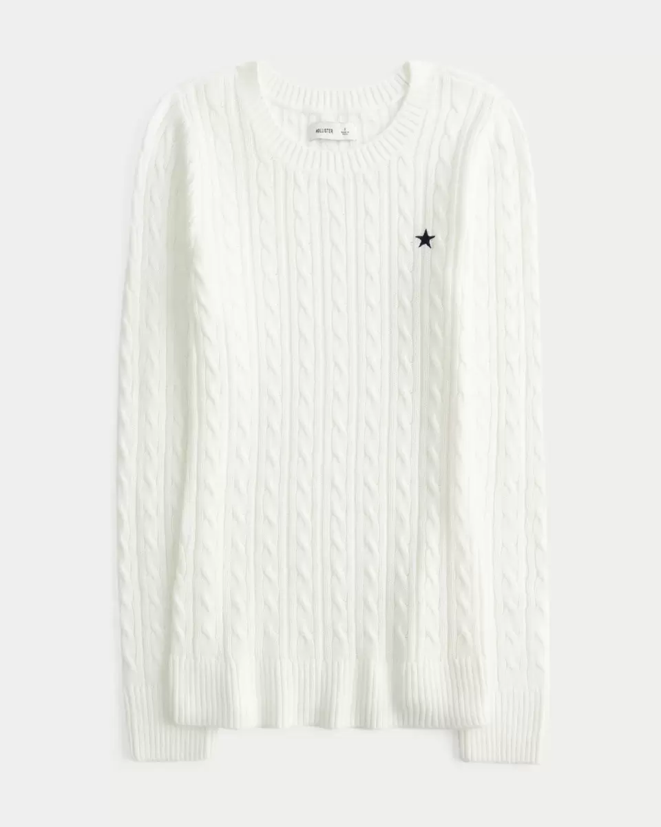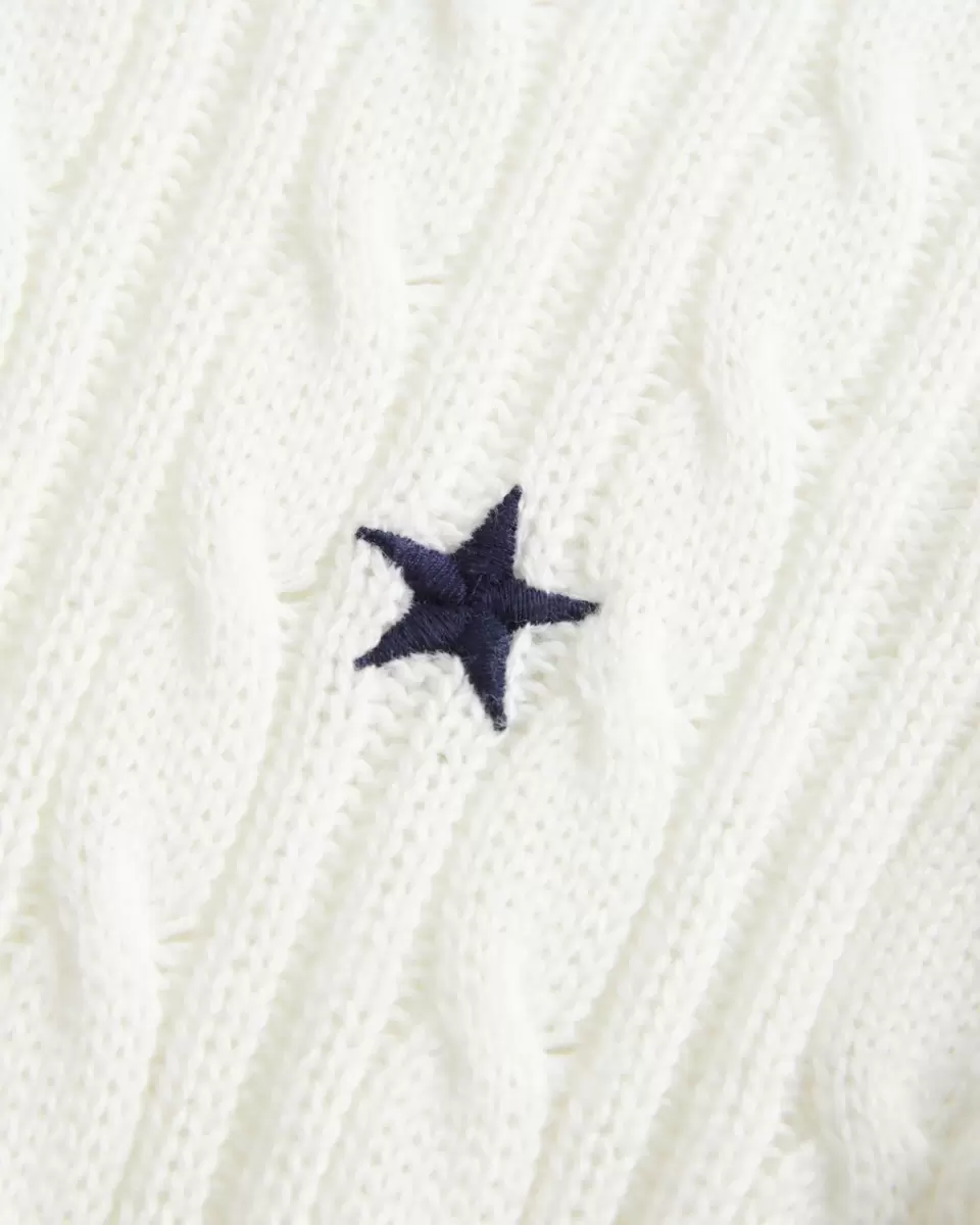 Pull en maille torsadée confortable et ultra doux, orné d’une étoile brodée sur la poitrine gauche. Encolure ras du cou, longueur plus longue, bords côtelés. Coupe ajustée. Importé.