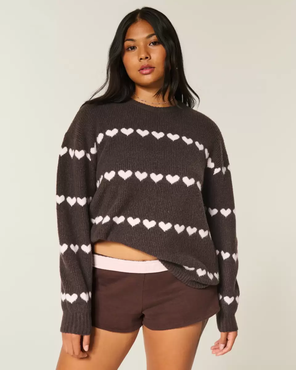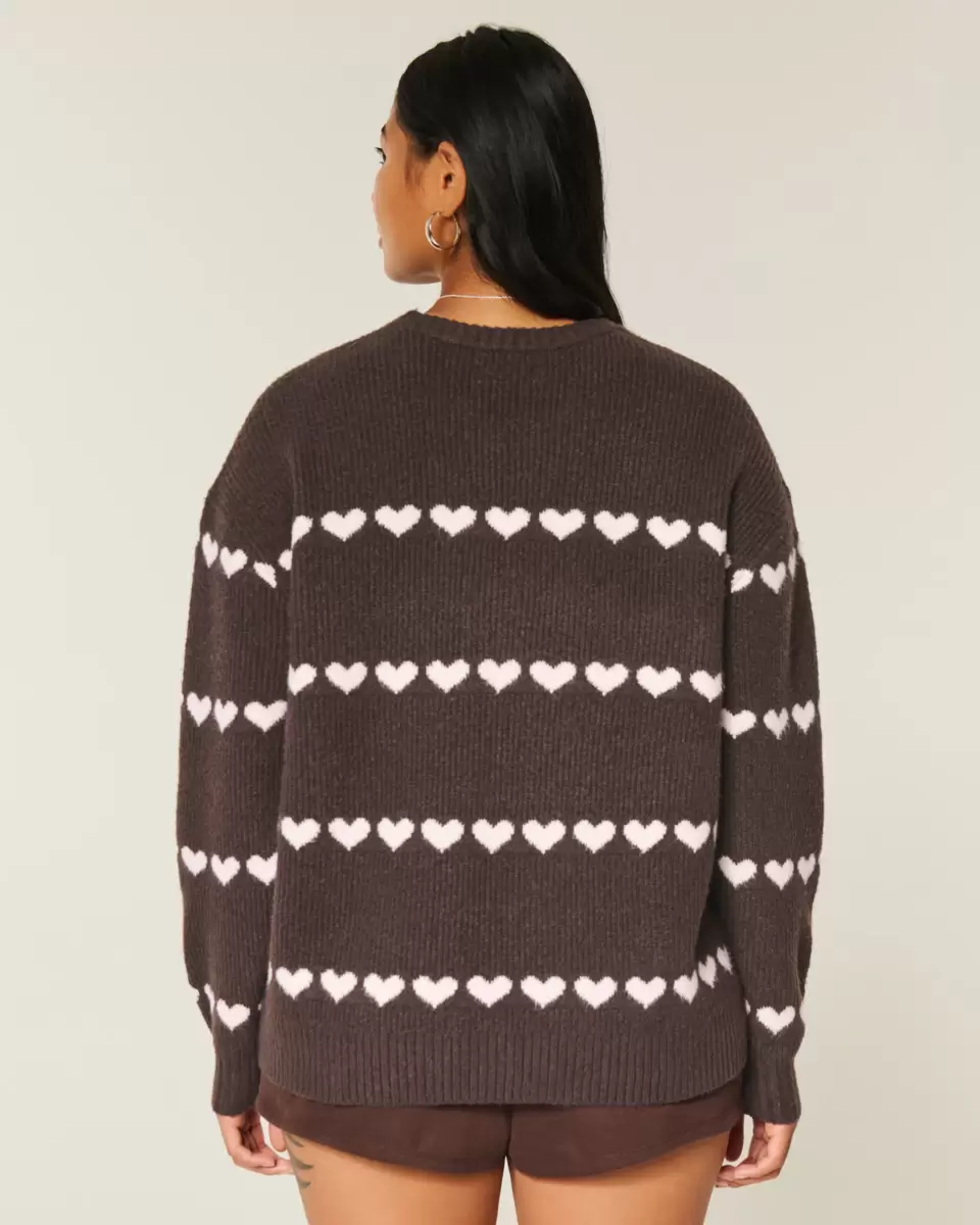 Un pull en maille ultra doux et confortable, orné d’un motif cœur classique. Encolure ras du cou, manches longues, bords côtelés. Coupe oversize. Importé.