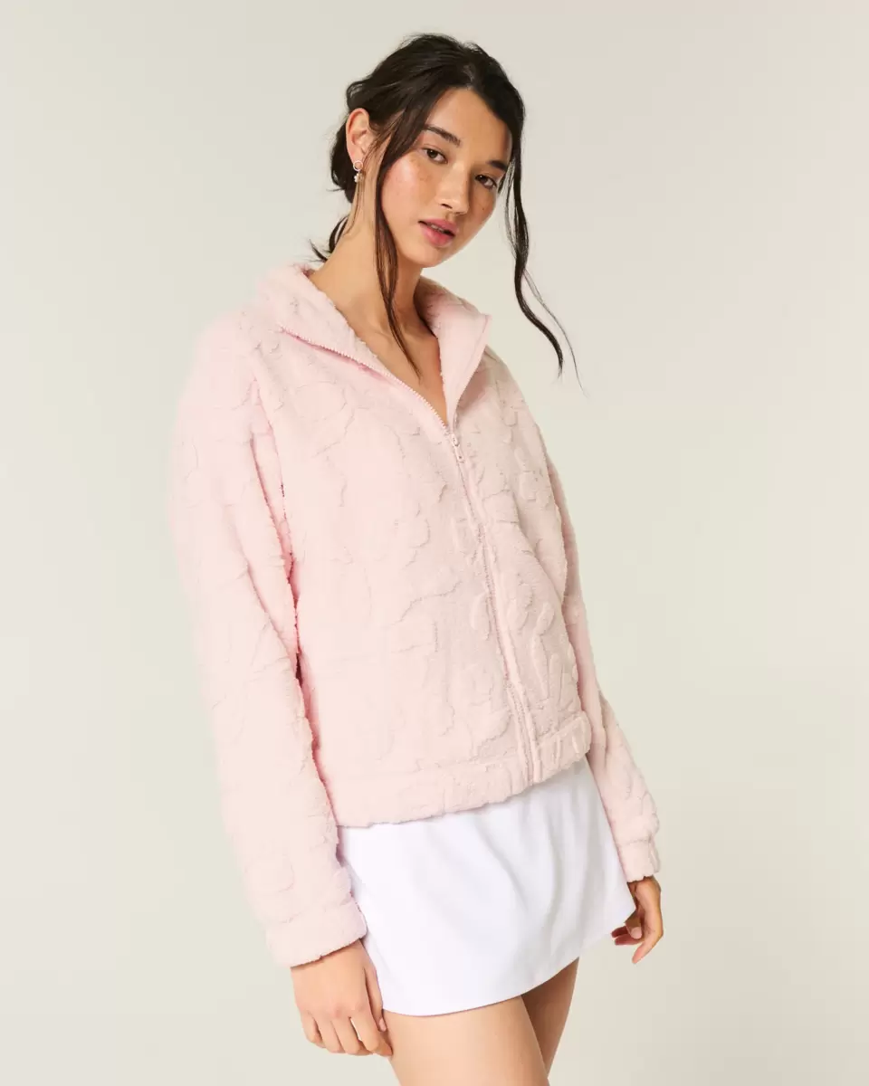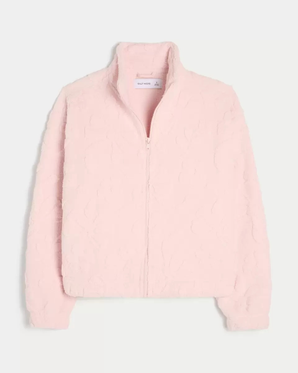 Haut confortable et ultra doux en tissu sherpa à motifs all-over. Fermeture éclair intégrale et col montant. Importé.