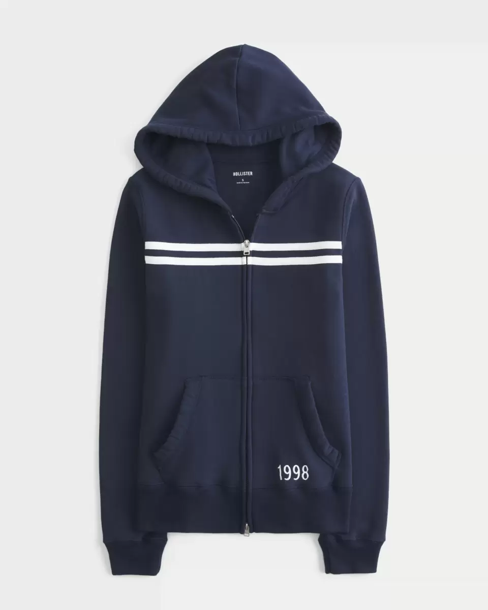 Sweat à capuche en polaire ultra doux avec rayures sur la poitrine et broderie graphique 1998 sur la poche. Fermeture éclair sur toute la longueur, manches longues, poches avant et capuche. Coupe ajustée. Importé.