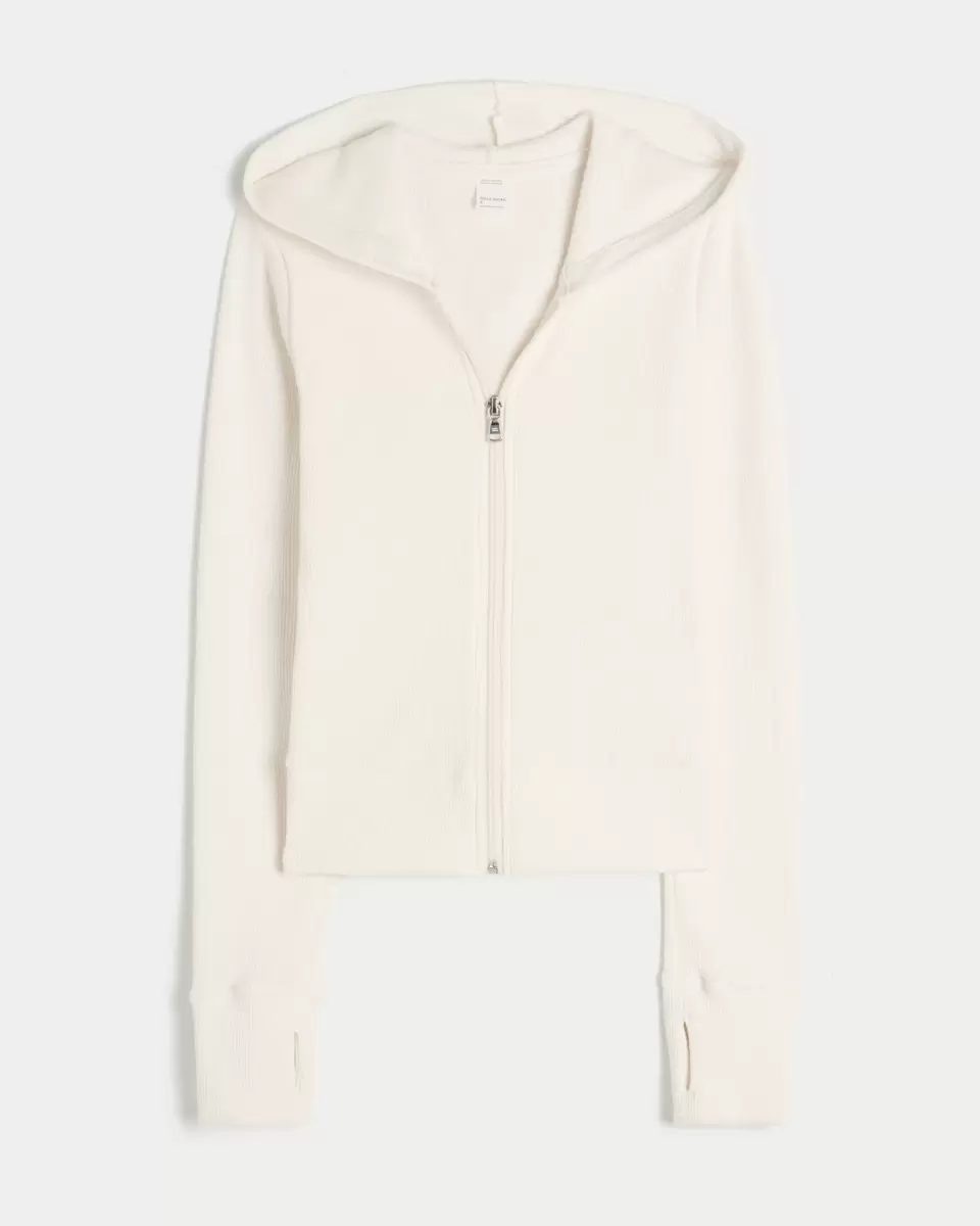 Un sweat à capuche mignon et confortable en tissu gaufré ultra doux. Fermeture zippée intégrale, capuche, manches longues avec ouvertures pour les pouces. Coupe ajustée.