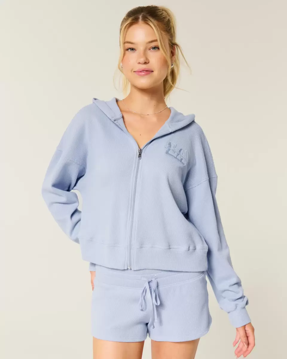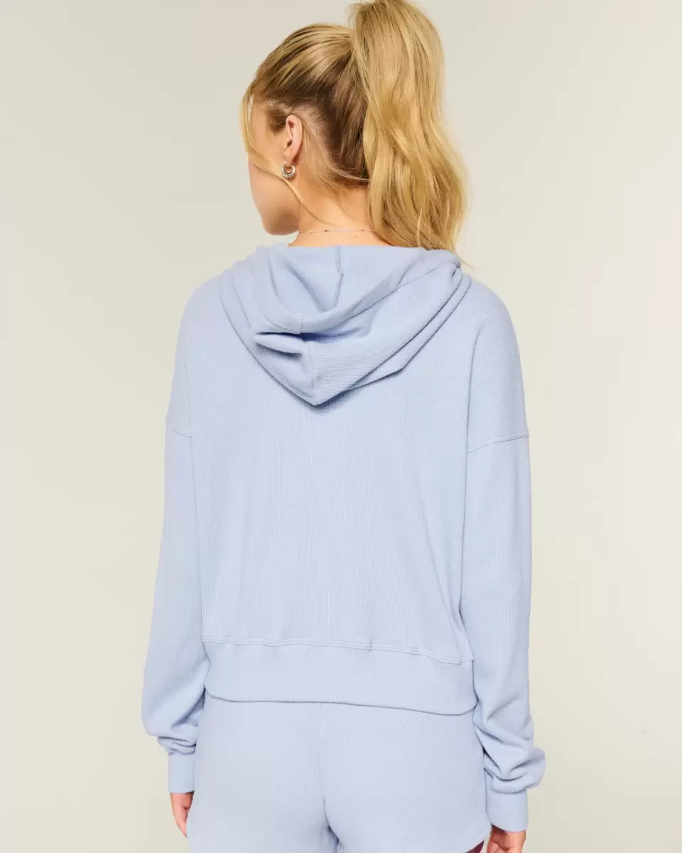 Sweat à capuche ultra doux en tissu gaufré confortable, avec fermeture éclair intégrale. Manches longues et capuche. Importé.