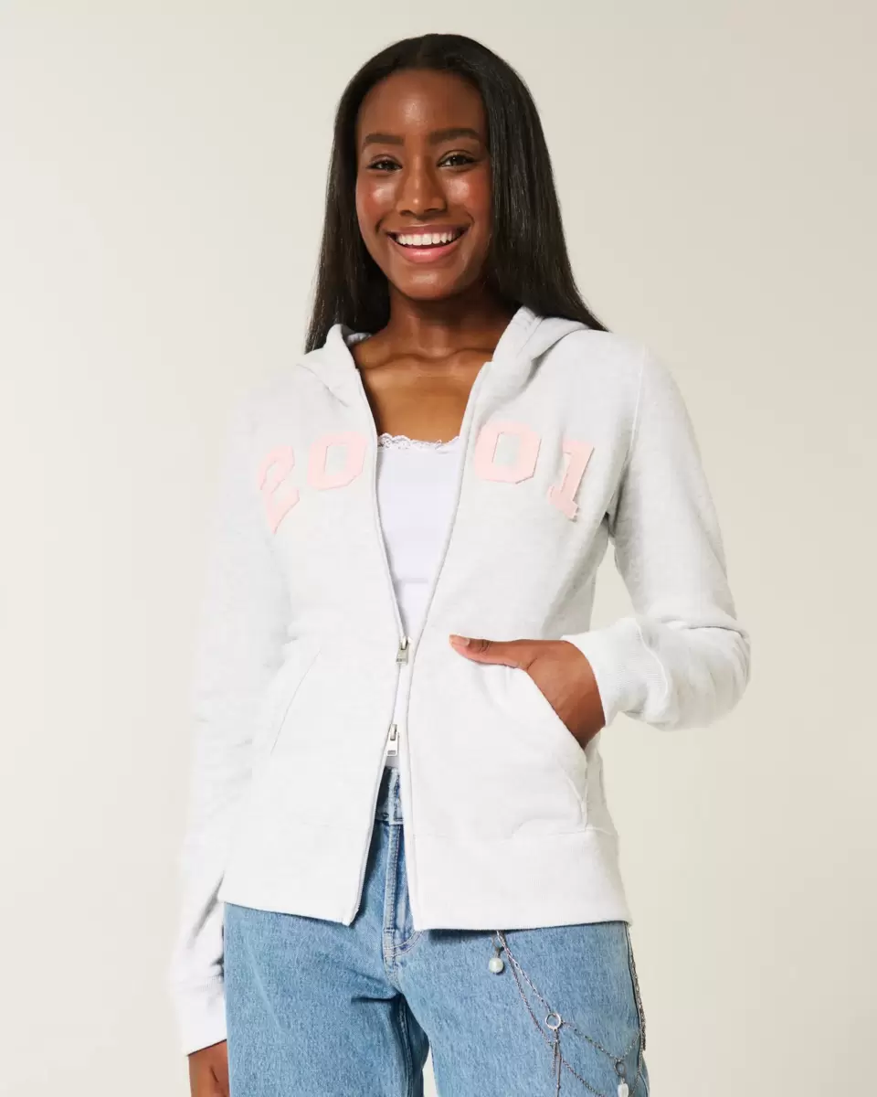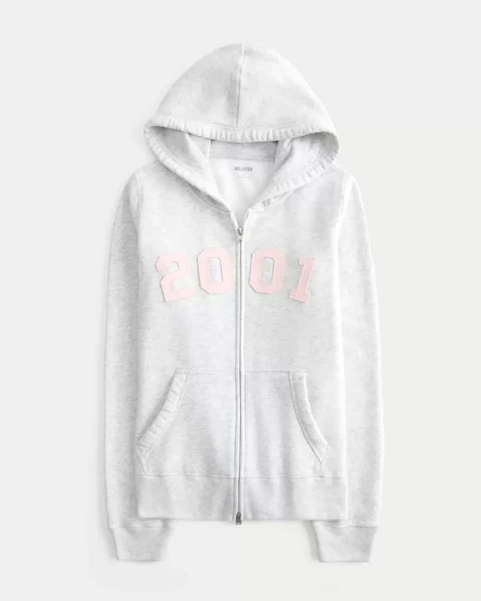 Sweat à capuche en polaire ultra doux avec imprimé graphique 2001. Fermeture éclair sur toute la longueur, manches longues, poches avant et capuche. Coupe ajustée. Importé.