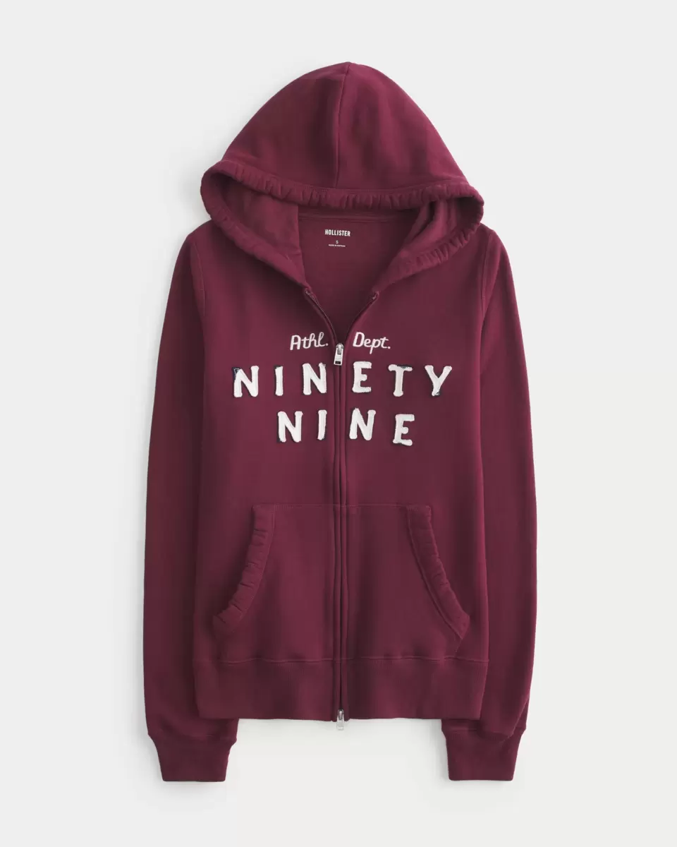 Sweat à capuche en polaire ultra doux avec motif Ninety Nine effet usé et broderie. Fermeture éclair sur toute la longueur, manches longues, poches avant et capuche. Coupe ajustée. Importé.