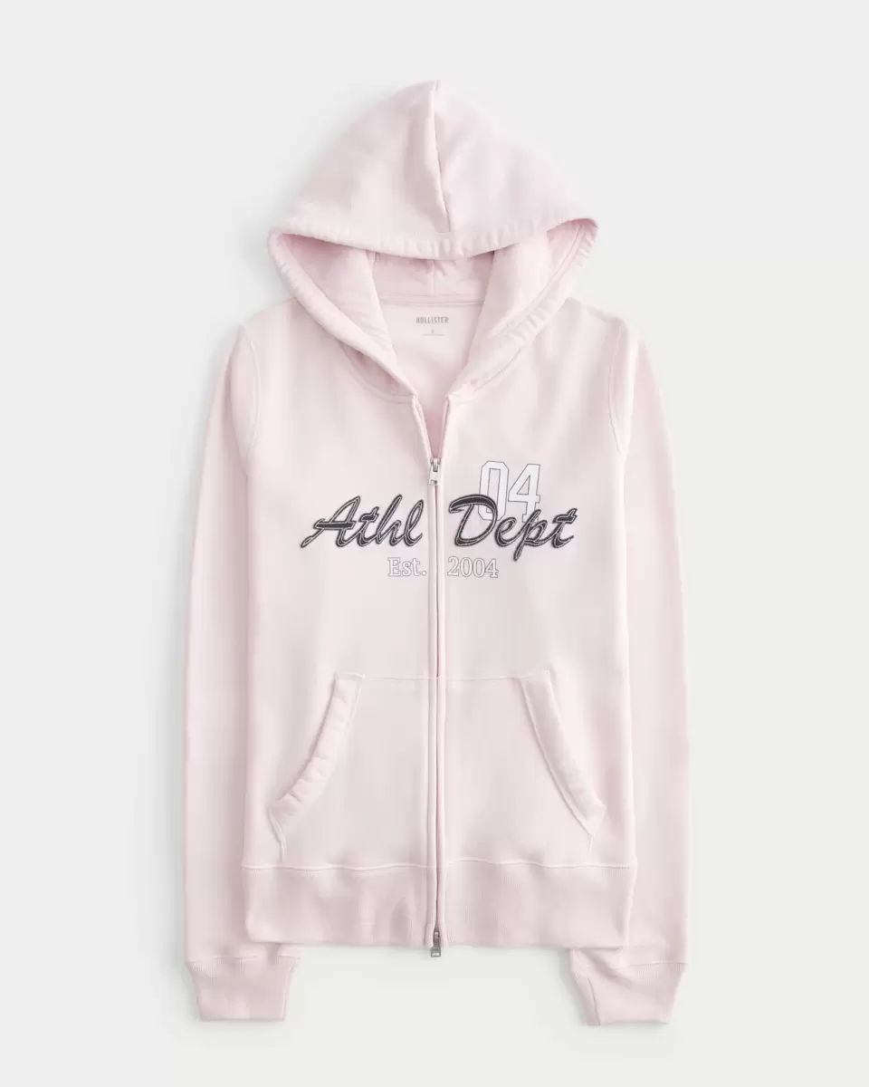 Sweat à capuche en polaire ultra doux avec imprimé Athl Dept. Fermeture éclair sur toute la longueur, manches longues, poches avant et capuche. Coupe ajustée. Importé.