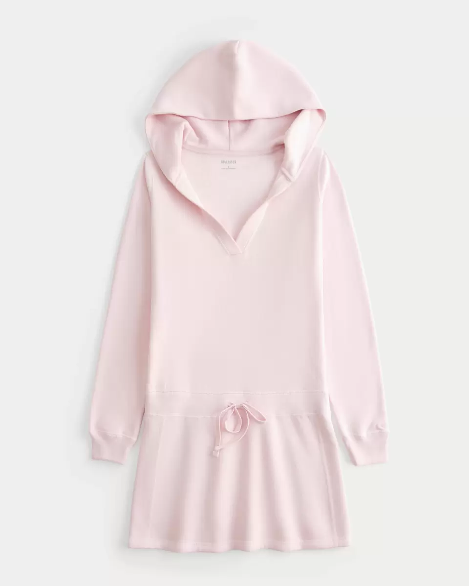 Confortable et ultra douce, cette robe polaire présente un décolleté en V et un cordon de serrage à la taille. Manches longues et capuche. Importée.