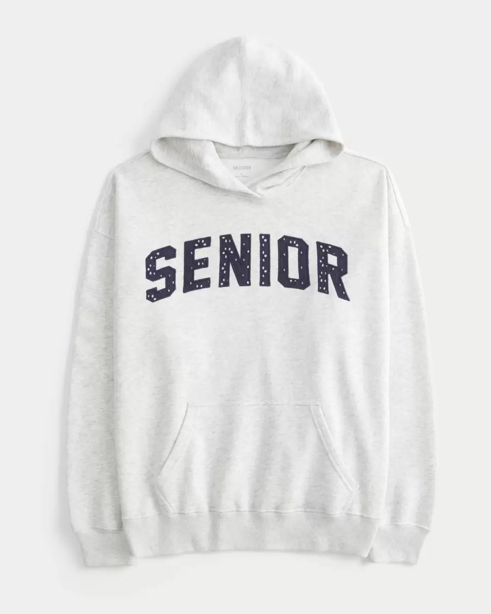 Sweat à capuche en polaire ultra doux avec motif Senior brodé à œillets. Poche kangourou sur le devant, capuche et manches longues. Coupe oversize. Importé.