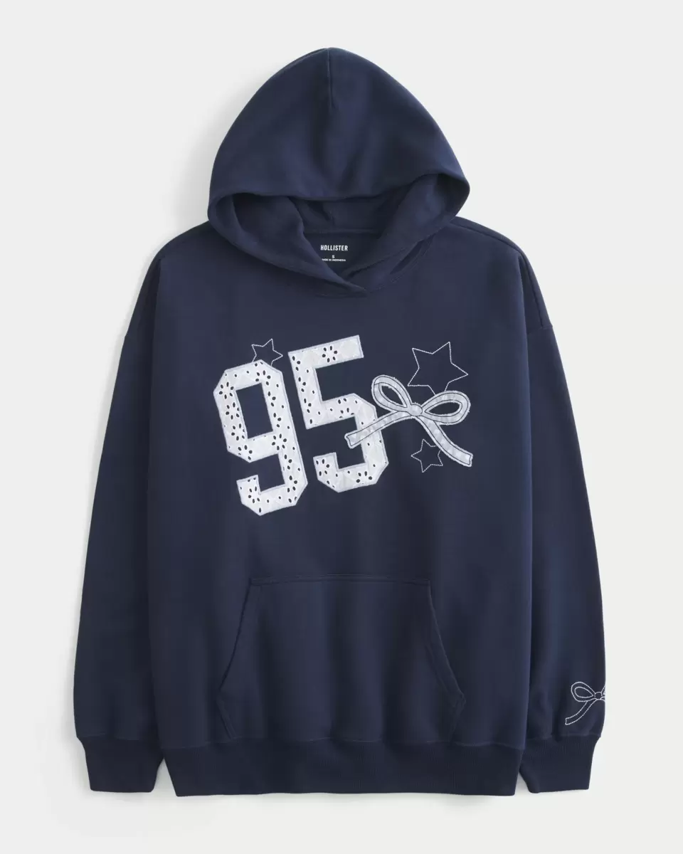 Sweat à capuche en polaire ultra doux avec motif graphique de style universitaire, appliqué avec œillets et broderie. Poche kangourou sur le devant, capuche et manches longues. Coupe oversize. Importé.