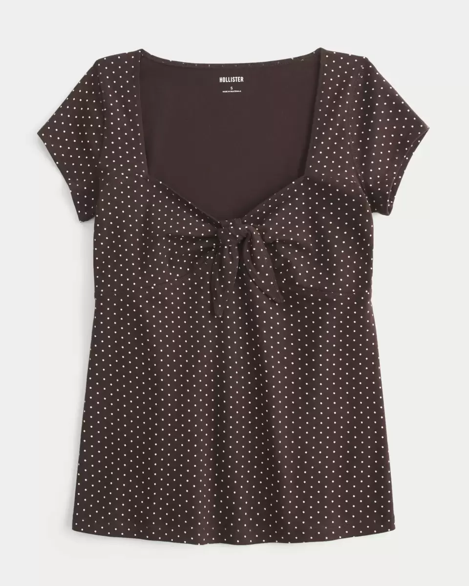 Haut babydoll fluide et ultra doux, orné d’un joli lien à nouer à la poitrine. Manches courtes, coupe longue. Coupe facile. Importé.