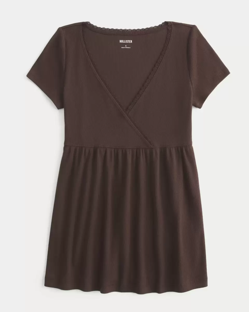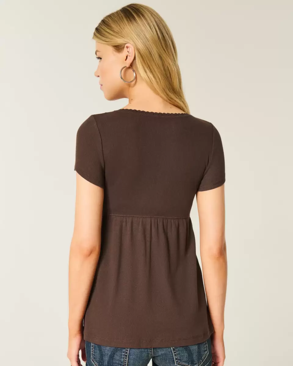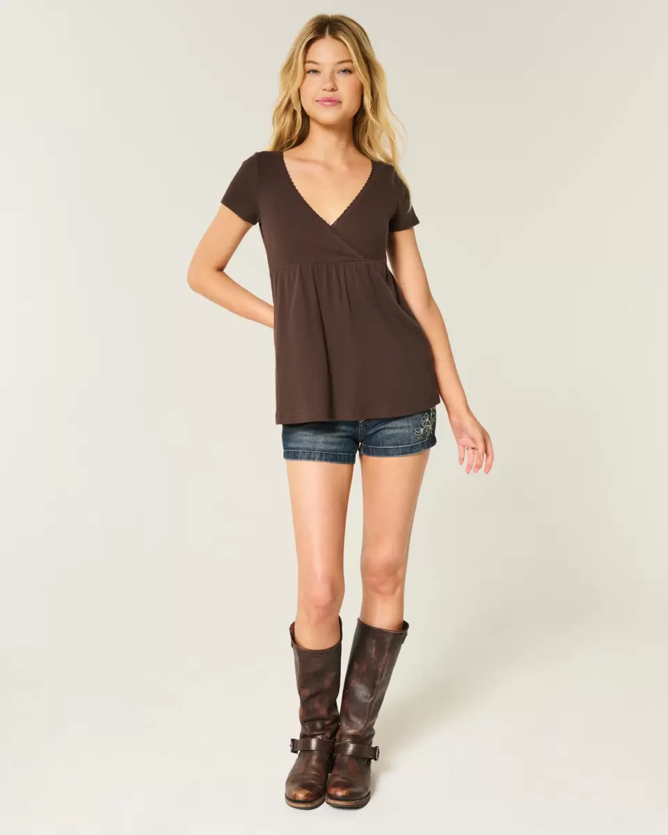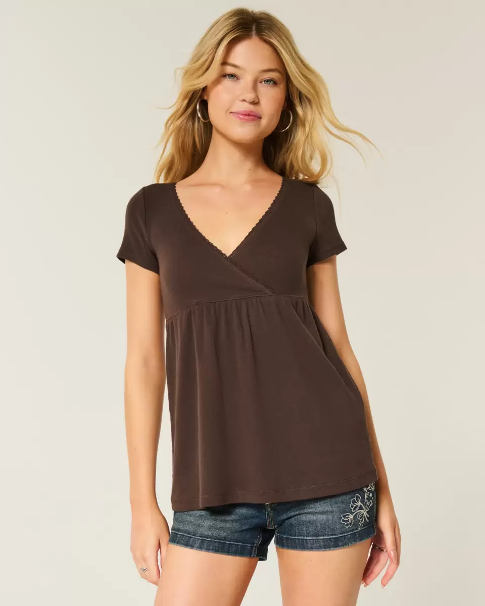 Joli et ultra doux, ce haut babydoll à manches courtes présente un décolleté en V avec bordure en dentelle et un ourlet fluide. Coupe facile. Importé.