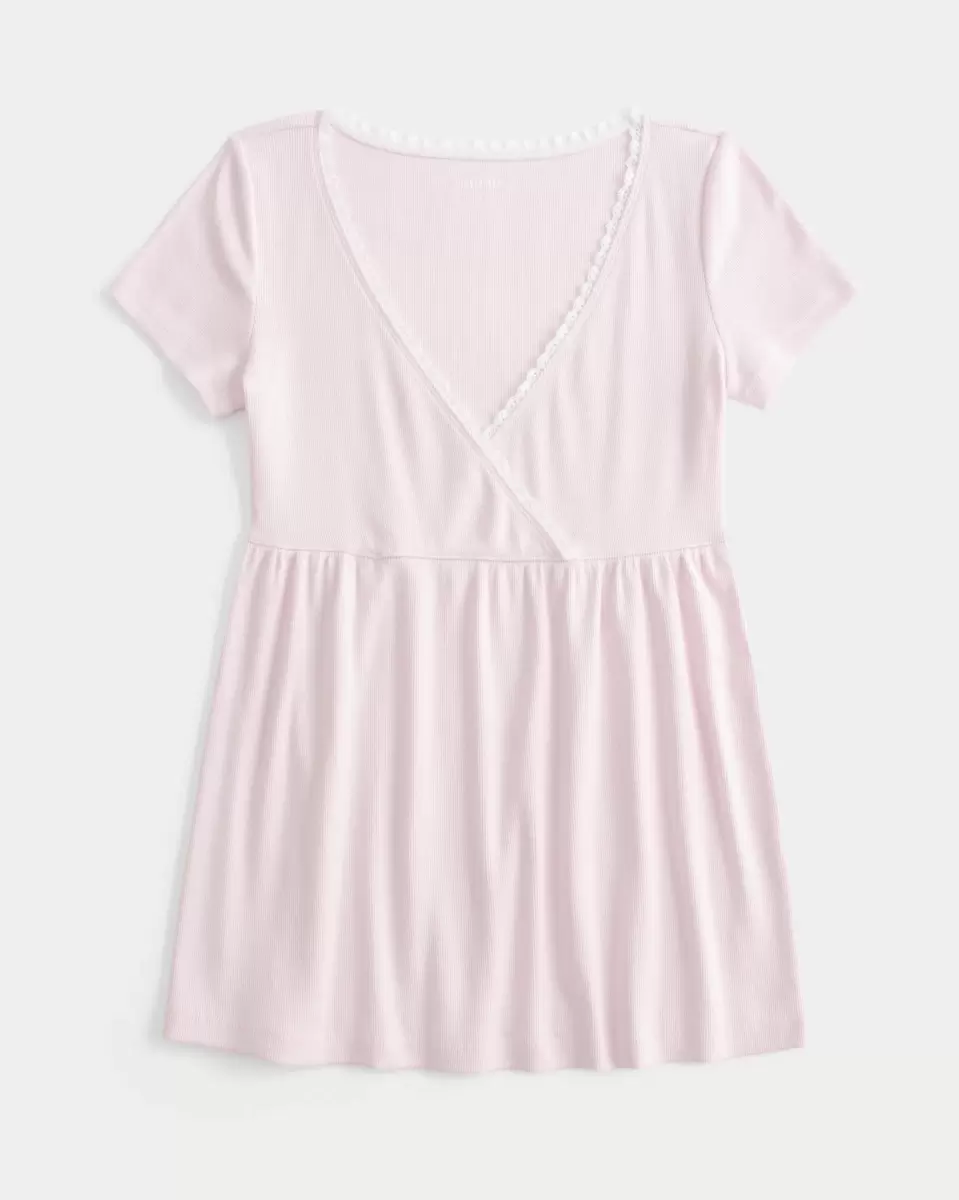 Fluide et ultra doux, ce haut babydoll présente une jolie bordure en dentelle le long de l’encolure et un ourlet drapé. Encolure en V, manches courtes. Coupe facile. Importé.