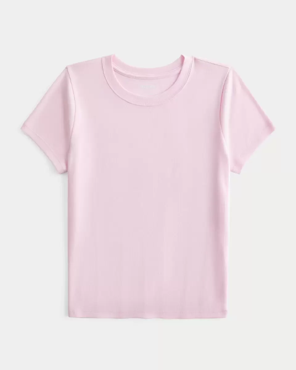 Un joli t-shirt bébé ultra doux, légèrement raccourci. Encolure ras du cou, manches courtes. Coupe facile. Importé.