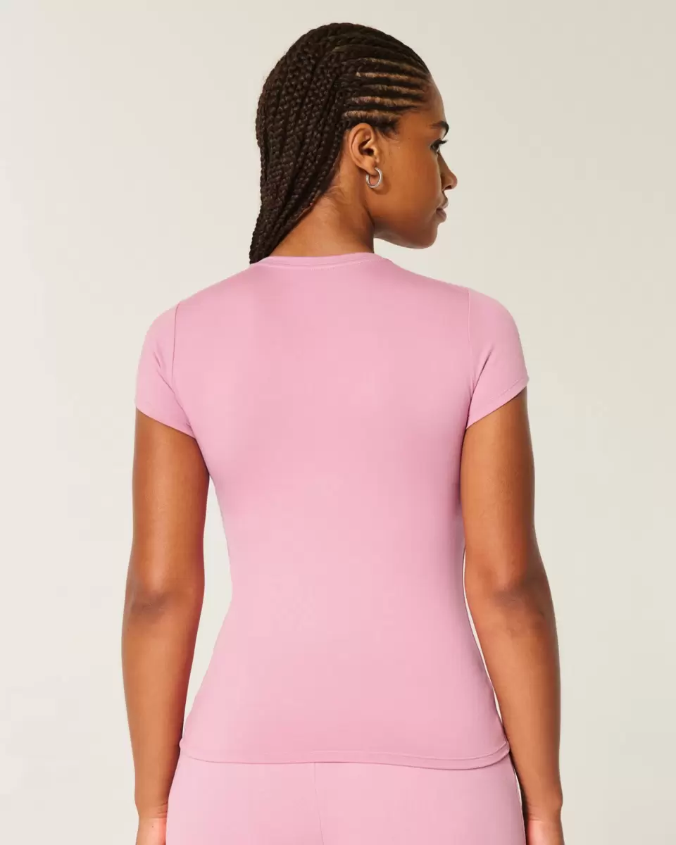 Un t-shirt bébé mignon et confortable en tissu ultra doux, sans coutures, avec une coupe légèrement raccourcie. Encolure ras du cou et manches courtes.