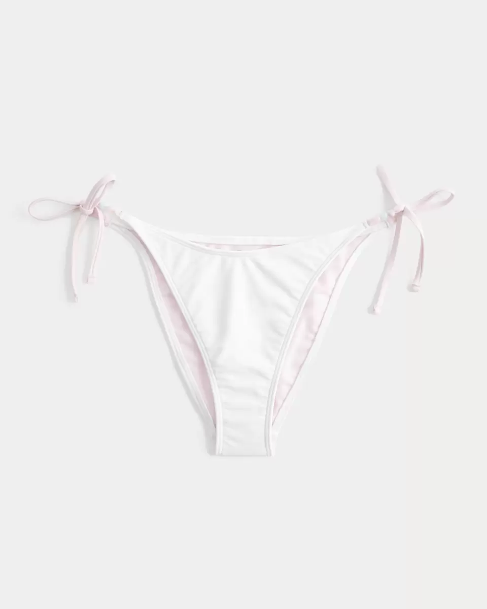 Un joli bas de bikini avec des liens latéraux ornés de perles. Une couvrance flatteuse. Importé.