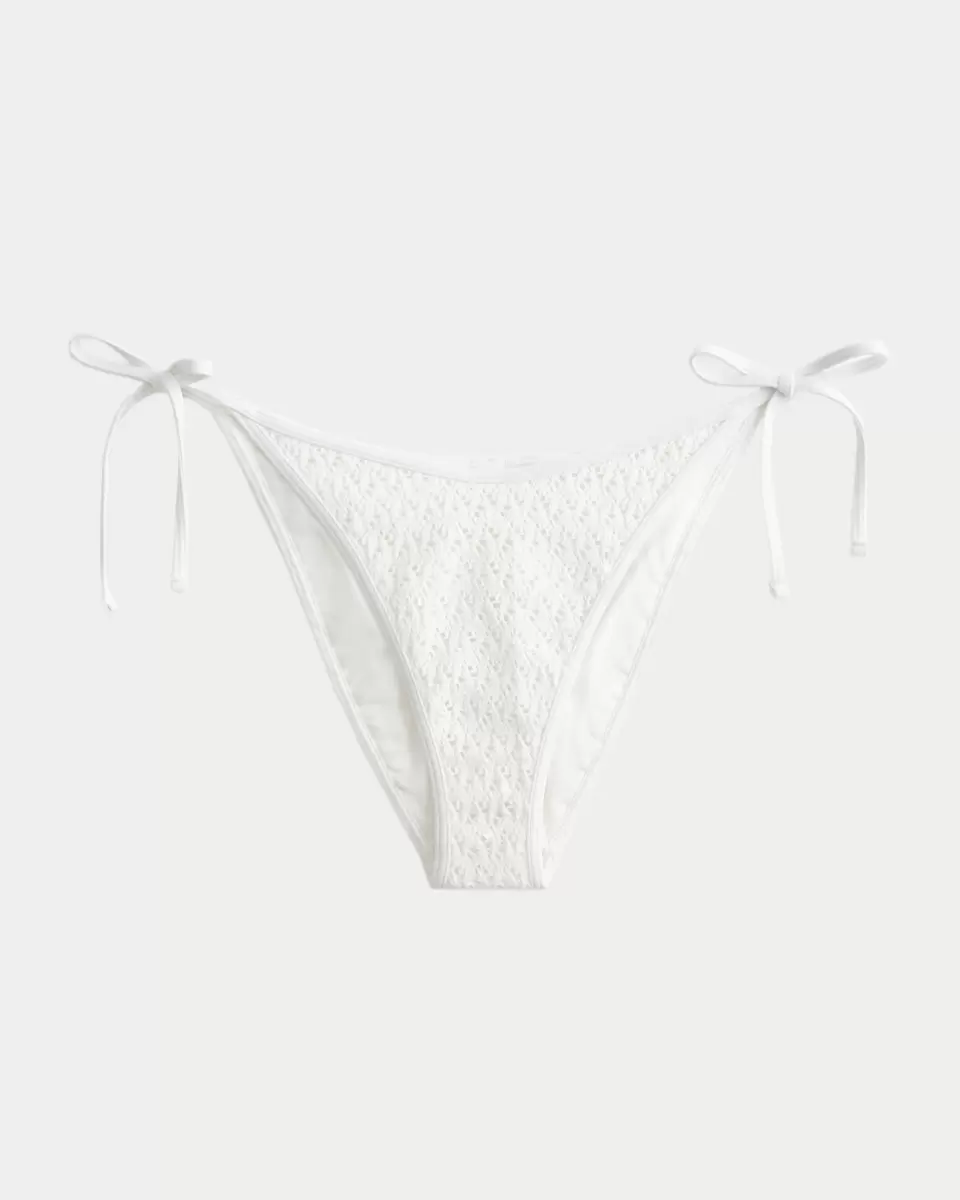 Ce joli bas de bikini est confectionné dans un tissu doux façon crochet et présente des paillettes. Liens latéraux, couverture flatteuse. Importé.