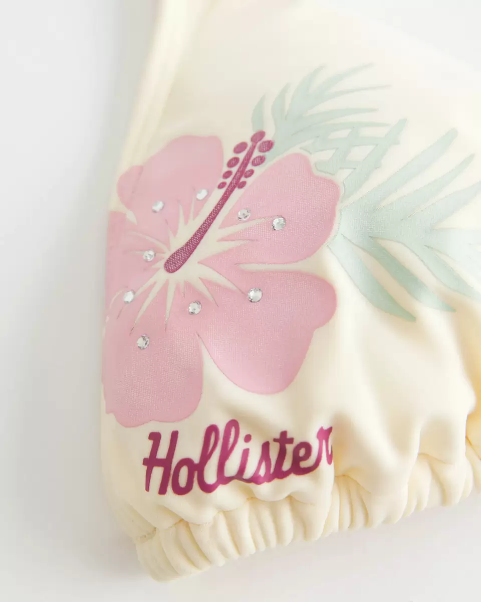 Un joli haut de bikini triangle en tissu doux, doté de bretelles dos nu, de perles et d’une fermeture à nouer. Motif floral avec logo, rembourrage amovible. Importé.