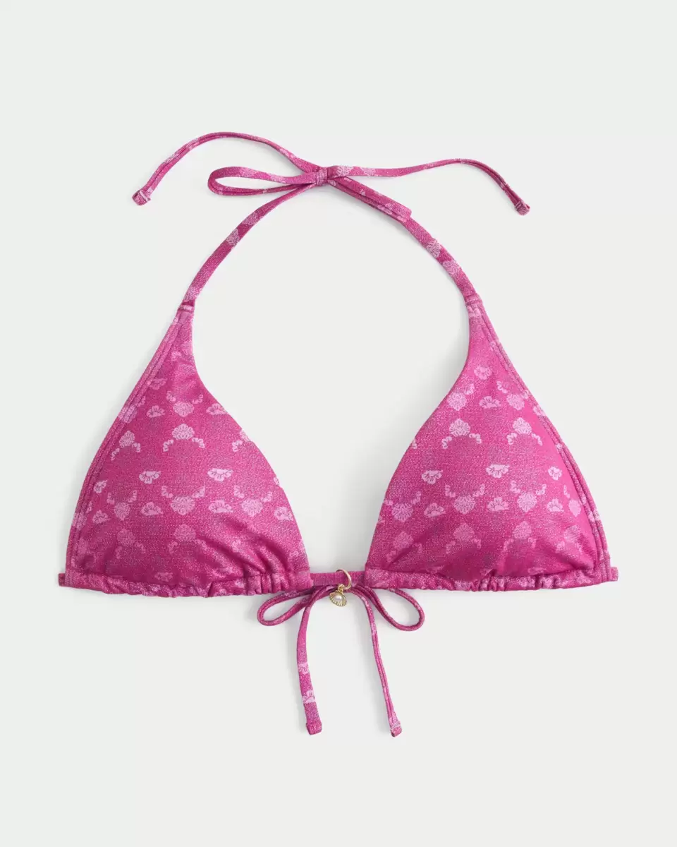 Fabriqué dans un tissu de bain doux et scintillant, ce haut de bikini est conçu pour être porté dos nu ou retourné pour un look bandeau/triangle. Joli détail de breloque métallique. Importé.