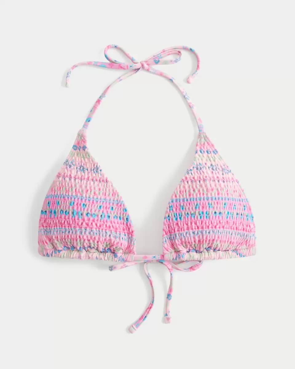 Ce joli haut de bikini est conçu avec des bretelles et une silhouette triangulaire. Tissu de bain doux à smocks, fermeture à nouer, rembourrage amovible. Importé.