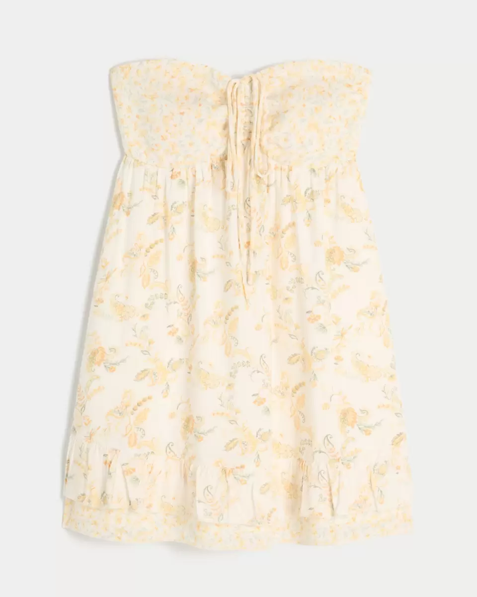 Une mini-robe fluide et ultra douce avec un ourlet superposé à volants. Sans bretelles, cintrée avec un lien central à la poitrine. Importé.