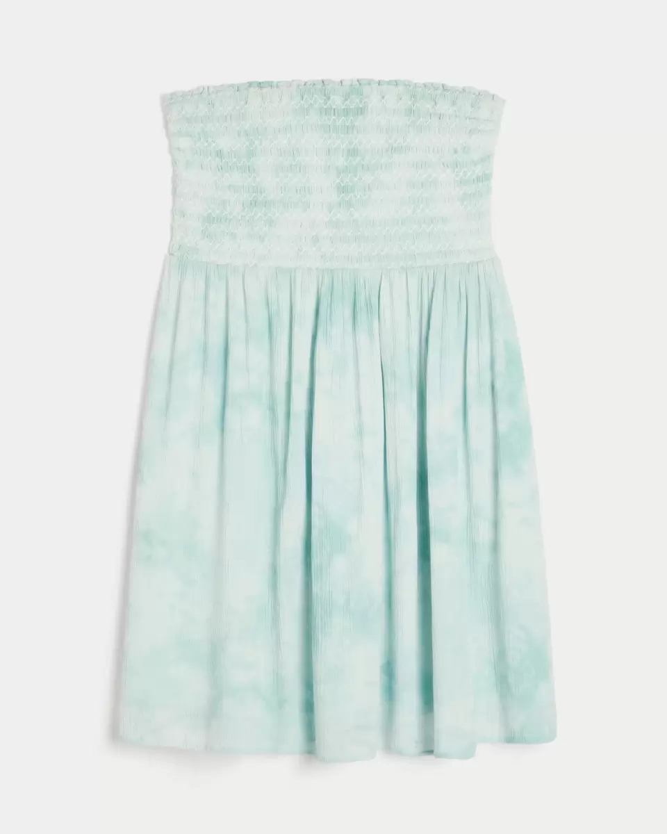 Une mini-robe fluide et ultra douce avec un effet délavé sur toute la surface du buste à smocks. Sans bretelles. Importé.