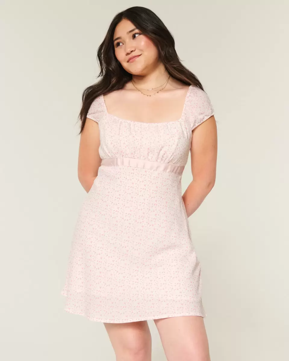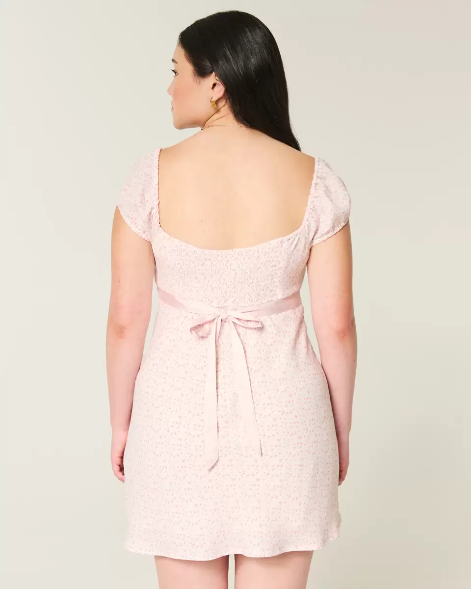Confectionnée en crêpe fluide et ultra doux, cette mini-robe est ornée d’une jolie bande de satin à la taille et de manches courtes. Importée.