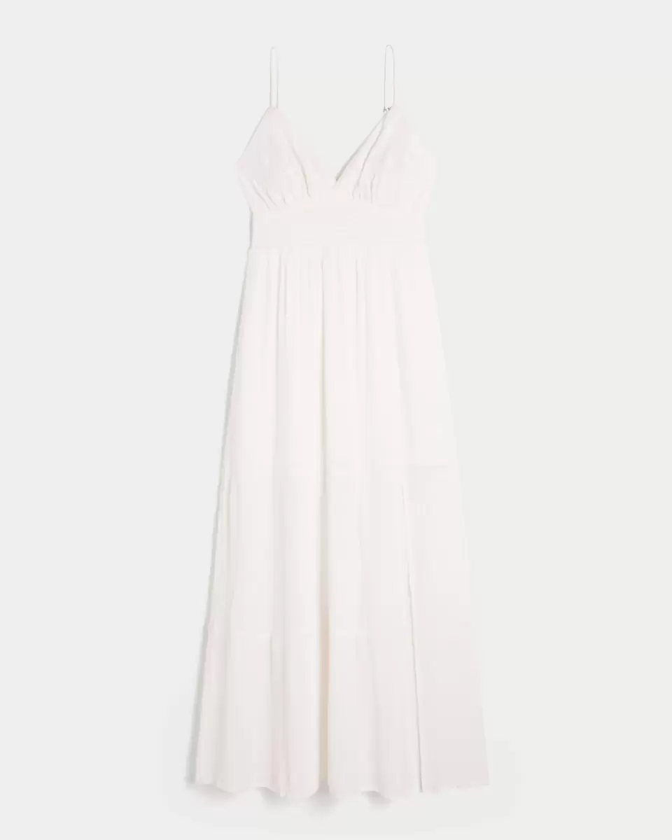 Cette jolie robe longue ultra douce présente des détails brodés au niveau de la poitrine. Ourlet fendu, bretelles réglables et taille smockée. Importé.