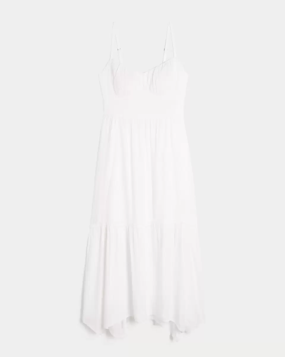Fluide et ultra douce, cette robe longue est dotée d’un joli tissu texturé à pois. Bretelles réglables. Importée.