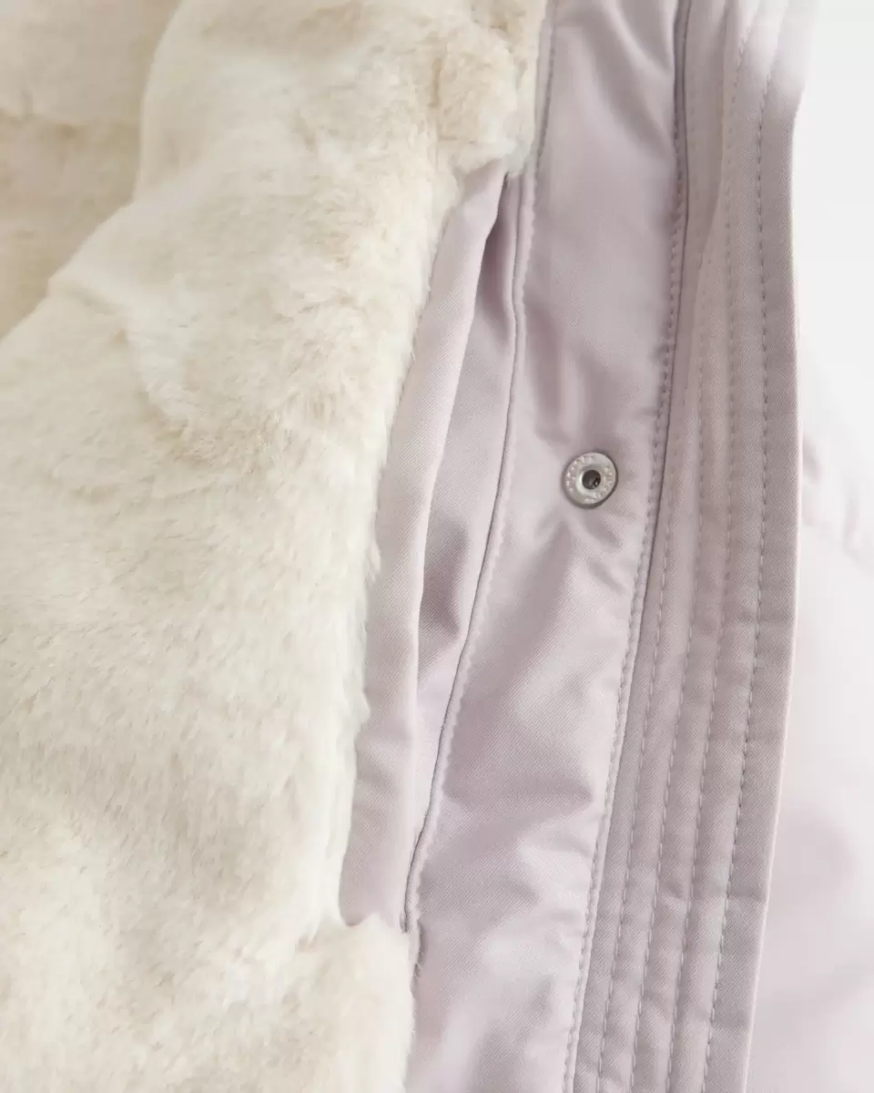Votre nouvelle veste préférée est dotée d’une doublure douillette en fausse fourrure, d’un col montant et d’une capuche doublée de fausse fourrure. Elle est matelassée, dispose de poches avant zippées et de poignets coupe-vent avec ouvertures pour les pouces. Importé.