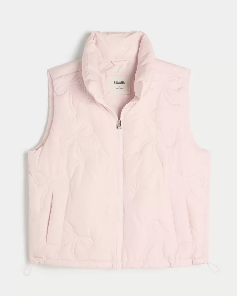 Ce gilet matelassé confortable présente un motif de nœuds cousus sur toute la surface et une fermeture éclair sur toute la longueur. Cordon de serrage à l’ourlet, col montant et poches. Importé.