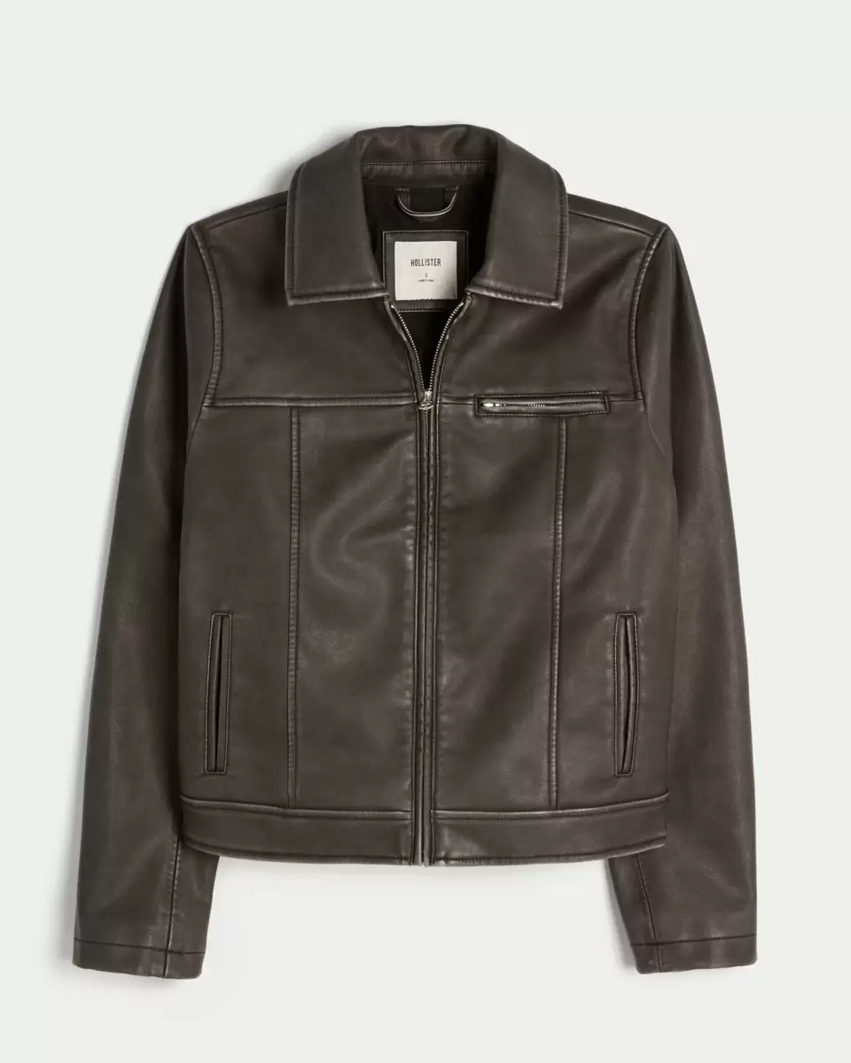 Veste classique en similicuir avec fermeture éclair sur toute la longueur. Poche poitrine gauche zippée, poches avant et col. Importé. Revêtement : 100 % polyuréthane / Similicuir : 100 % polyester / Doublure : 100 % polyester. Ne pas utiliser d’eau de Javel. Ne pas nettoyer à sec. Ne pas repasser. Ne pas sécher en machine. Ne pas laver. Détacher.