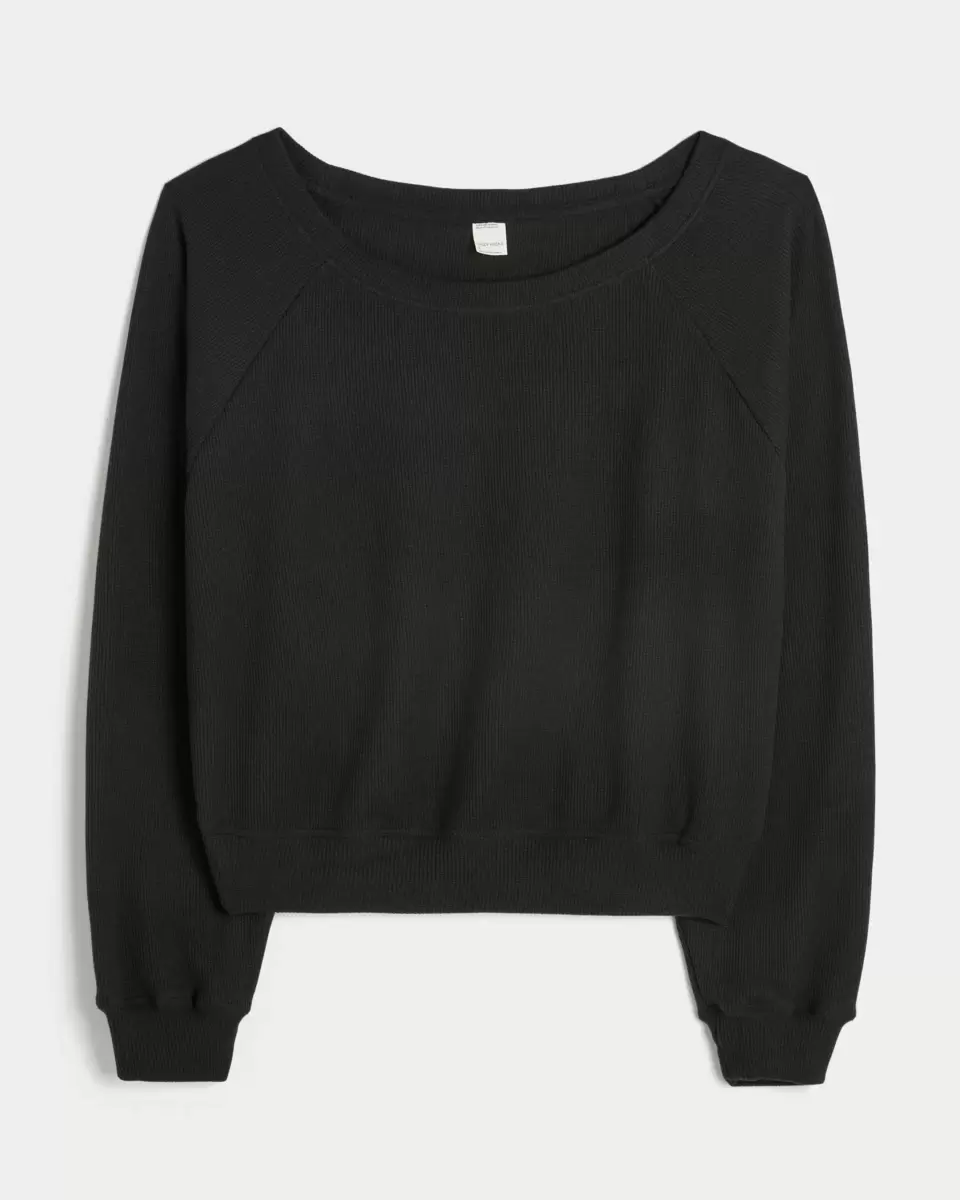 Haut à manches longues confortable et ultra doux en tissu gaufré avec une encolure dégagée. Importé.