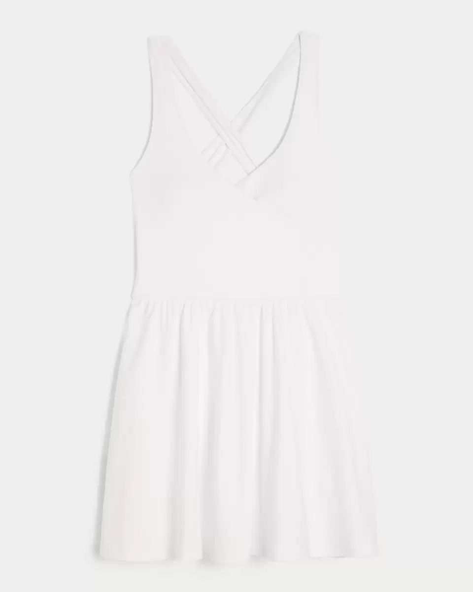 Une robe de sport ultra-confortable, confectionnée dans notre tissu Recharge respirant, extensible dans les 4 sens et évacuant l’humidité, au toucher brossé ultra doux. Short et soutien-gorge de sport intégrés, devant cache-cœur et bretelles dos nu croisées dans le dos. Importé.