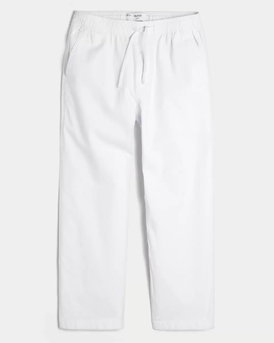 Pantalon confortable en mélange de lin doux, avec cordon de serrage à la taille et jambe ample. Poches. Importé.