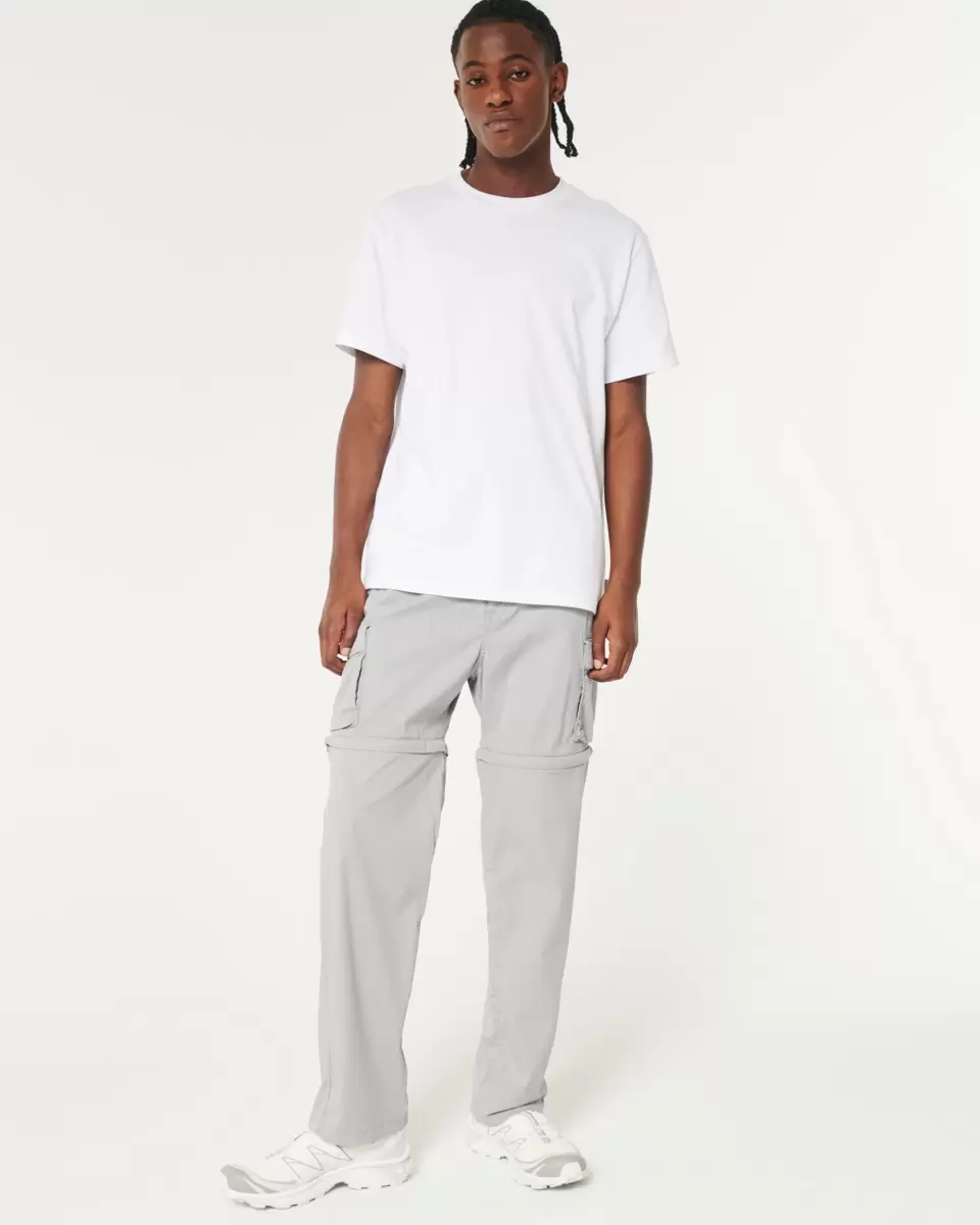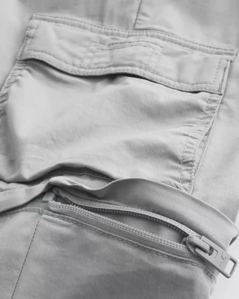 Pantalon ultra-confortable à jambe droite et fermetures éclair pour un passage instantané du pantalon au short. Poches cargo latérales, taille cintrée. Importé.